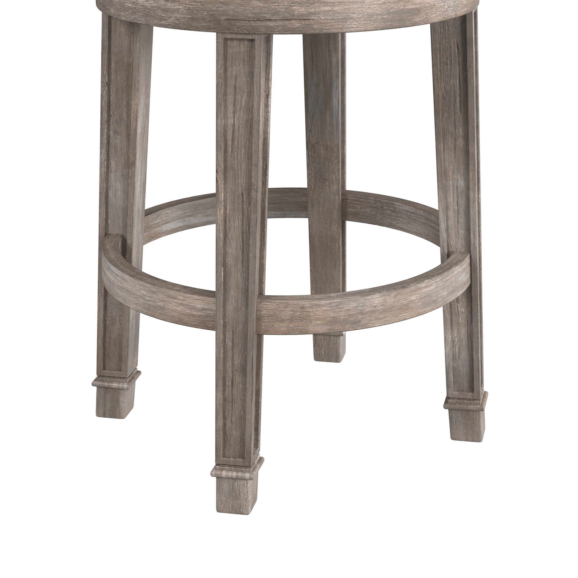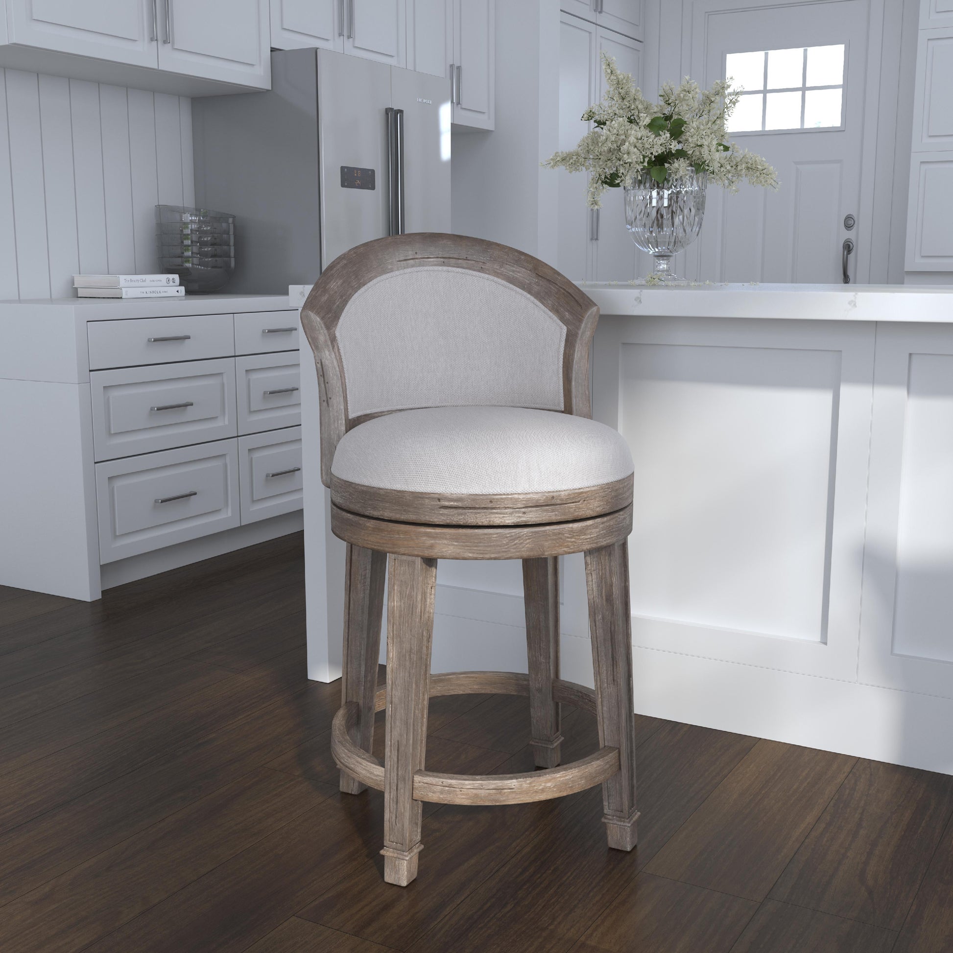 An updated take on a classic silhouette? Check. Uncompromising comfort? Check. Contemporary flavor? Check. An eye-catching arched backrest will make this counter height swivel stool a conversation piece while durable rubberwood base will keep it functional and fabulous for years. A stylish combination of distressed dark gray finish and woven gray upholstery create a timeless, tasteful palette that will stay fresh as decor trends change. A 360-degree swivel and plush wrap-around back keep things comfy and stylish. Assembly required.