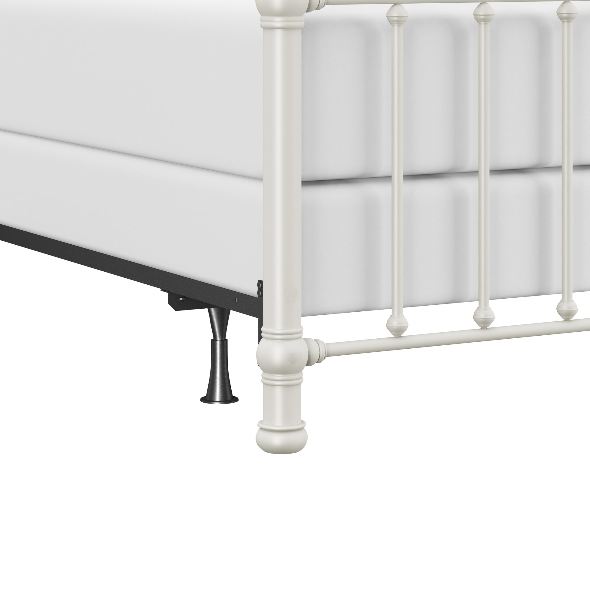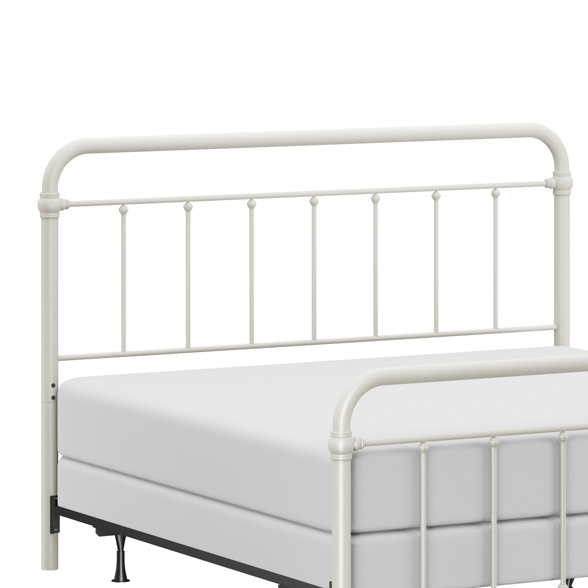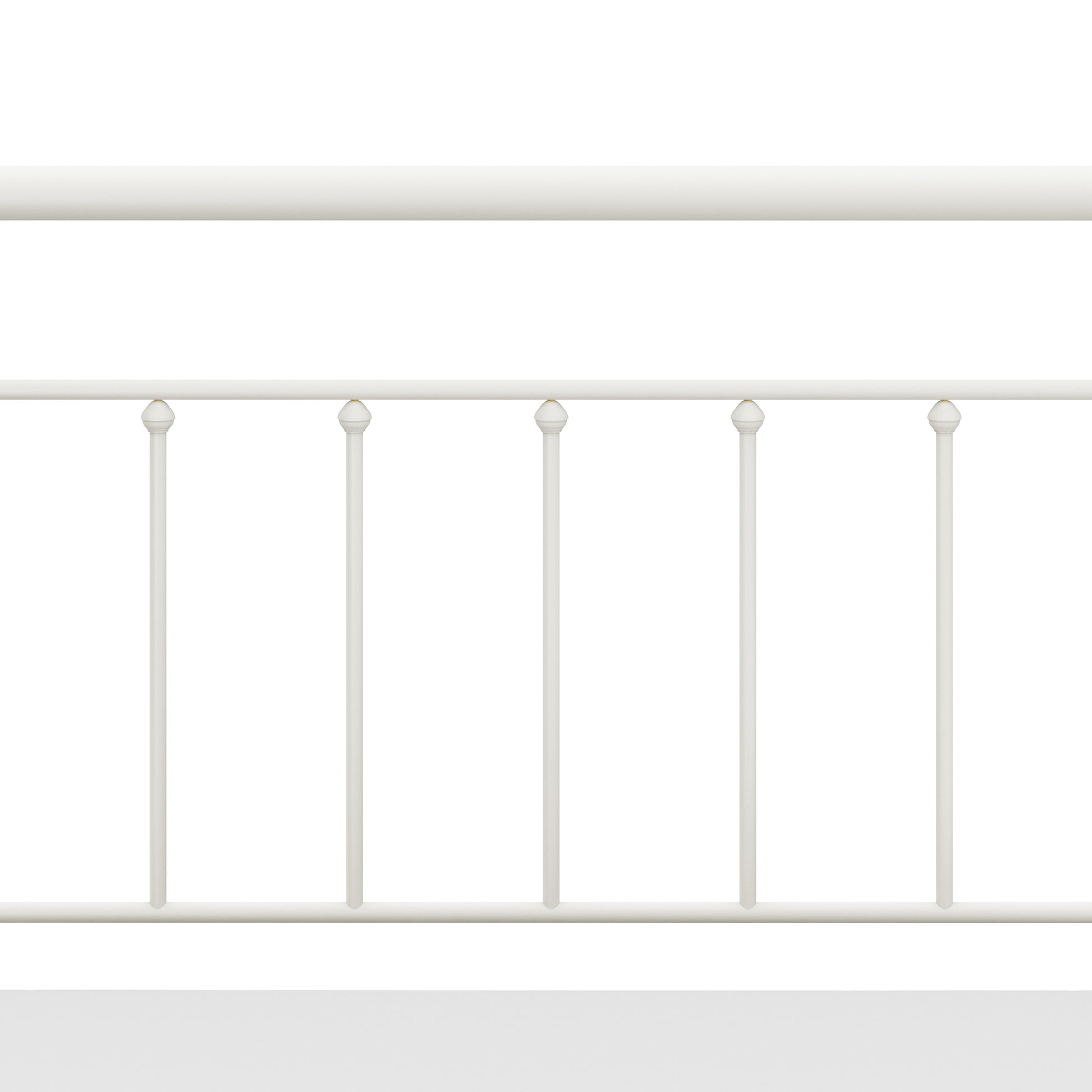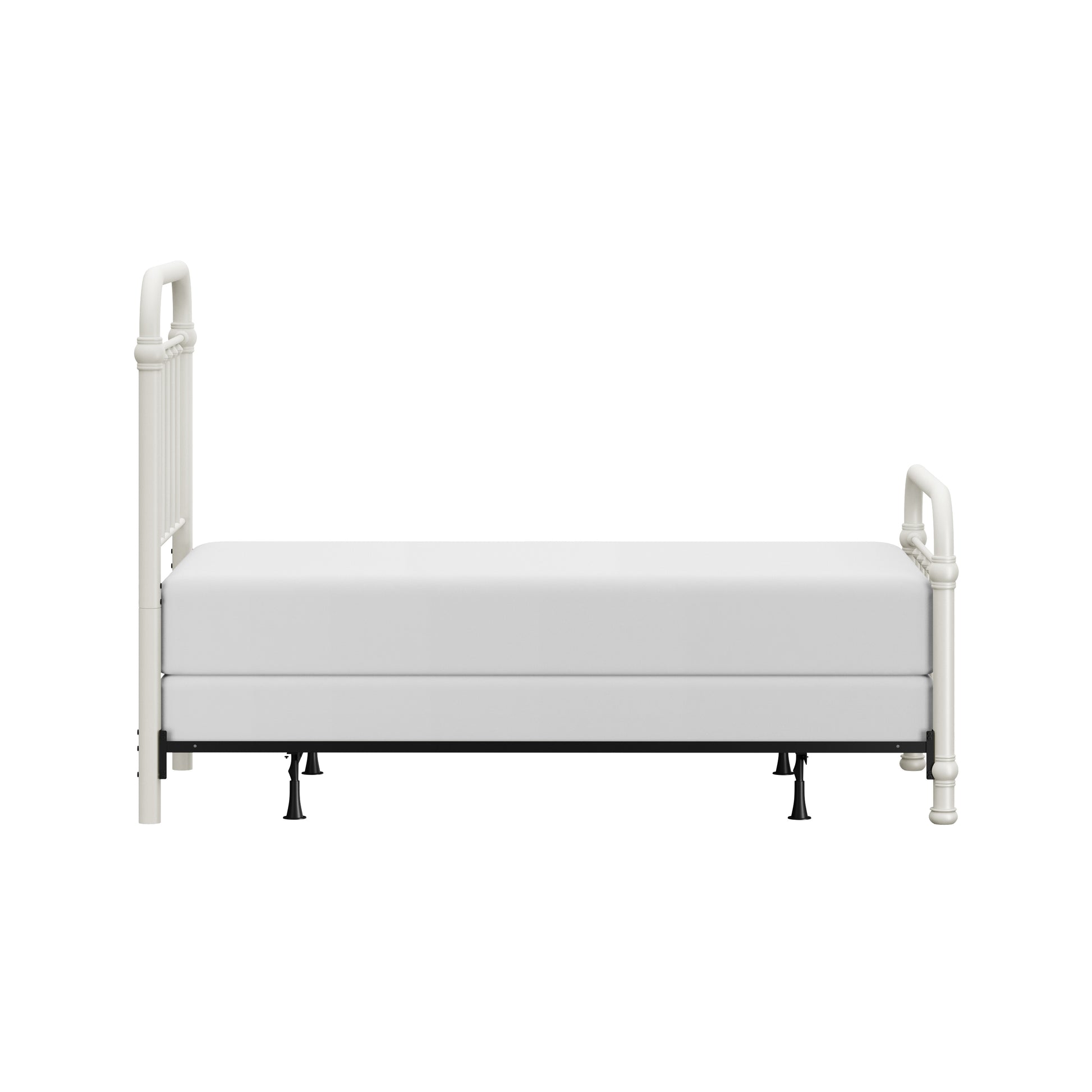 This full-size metal bed adds a touch of vintage style to any bedroom, featuring castings and fittings that seamlessly complement its rounded square design. Elegant and trendy, the white finish is a versatile choice that fits into a wide variety of decor styles and color schemes. Includes headboard, footboard, and bed frame. Box spring and mattress required; not included. Assembly required.