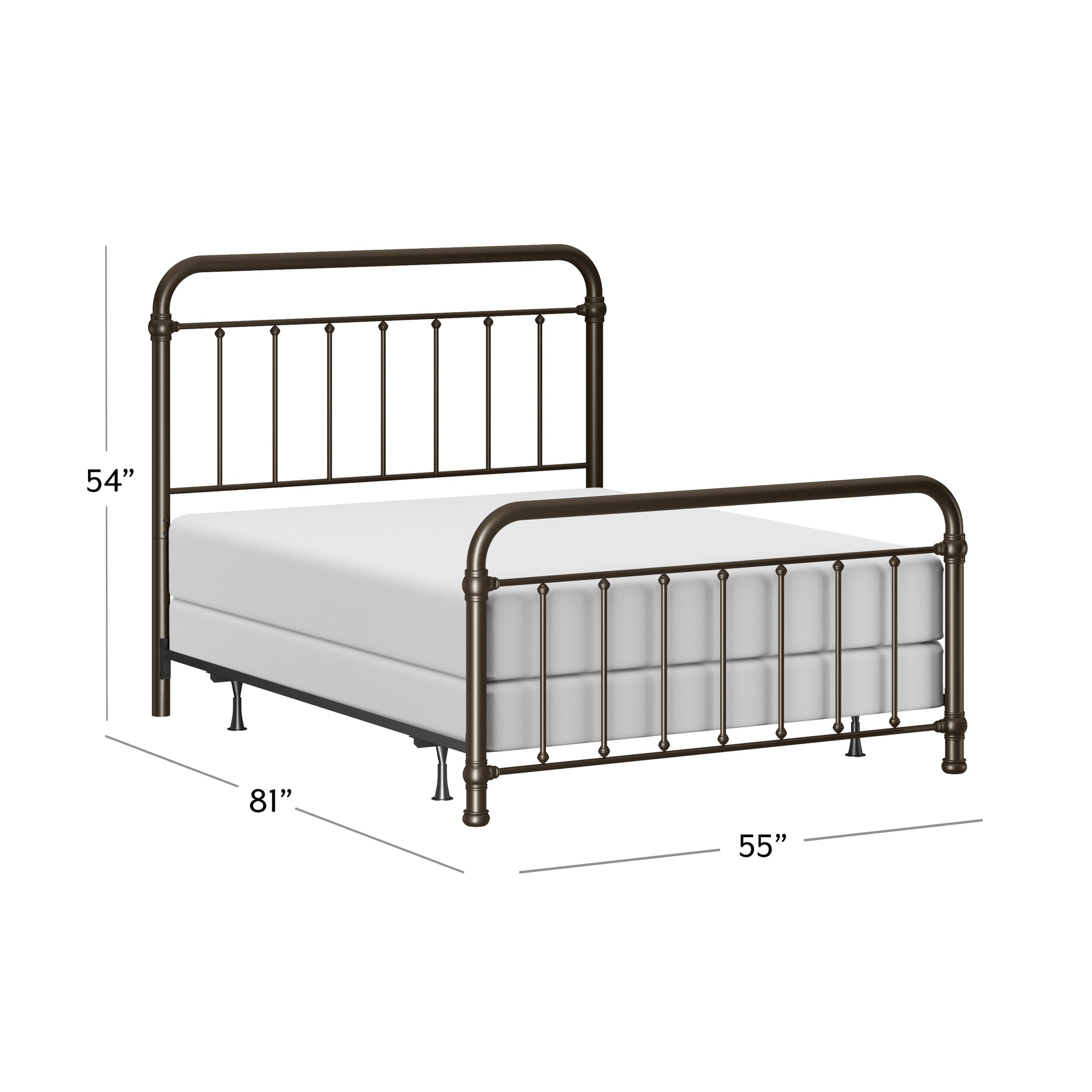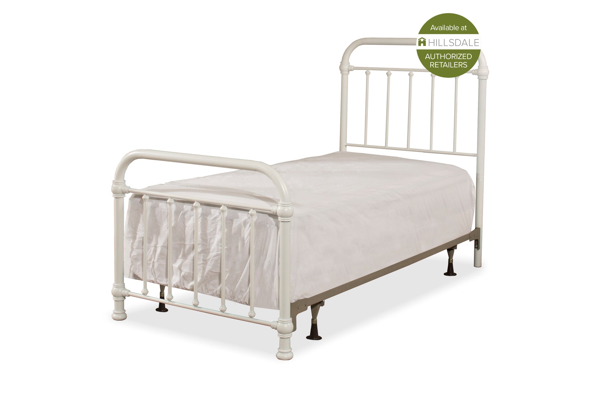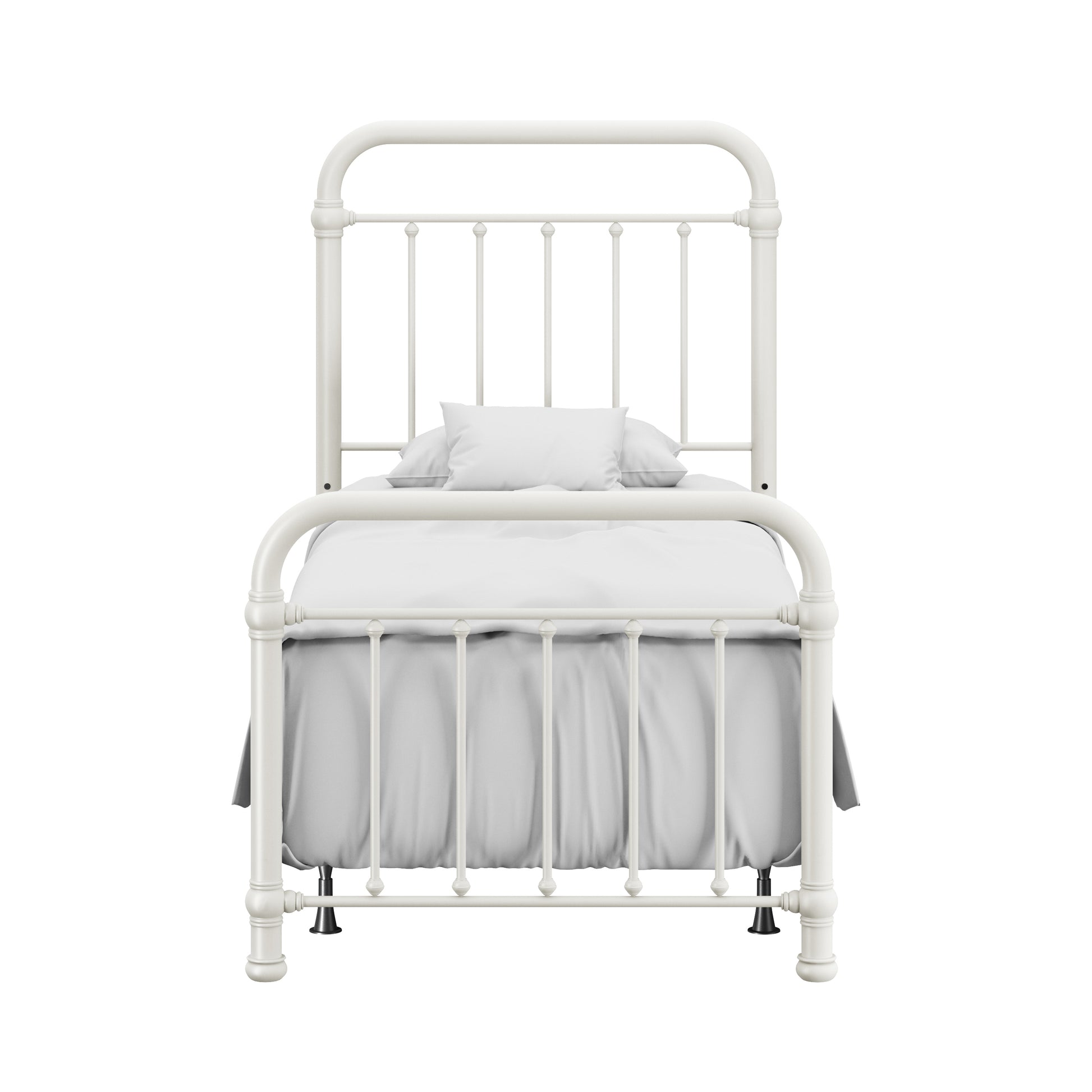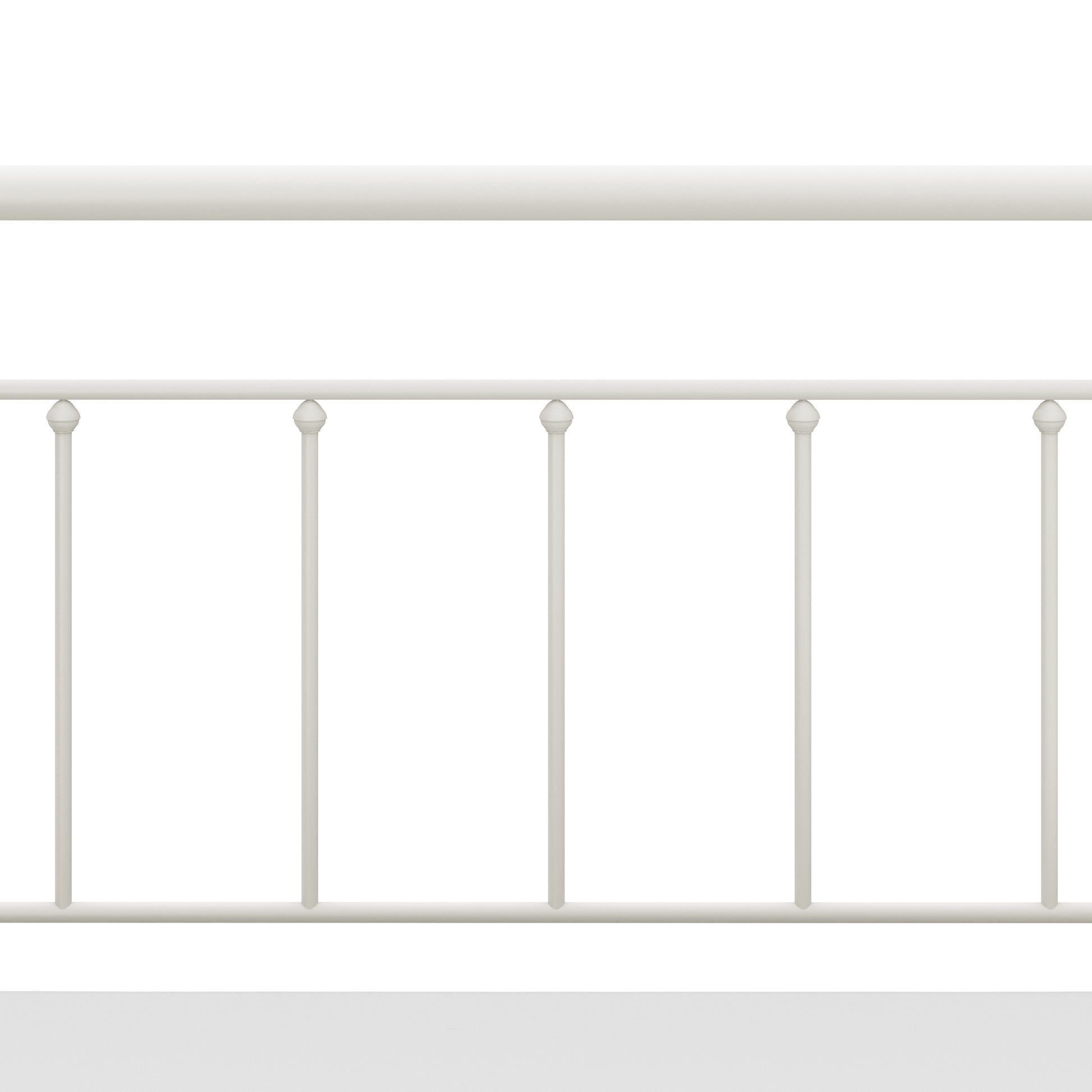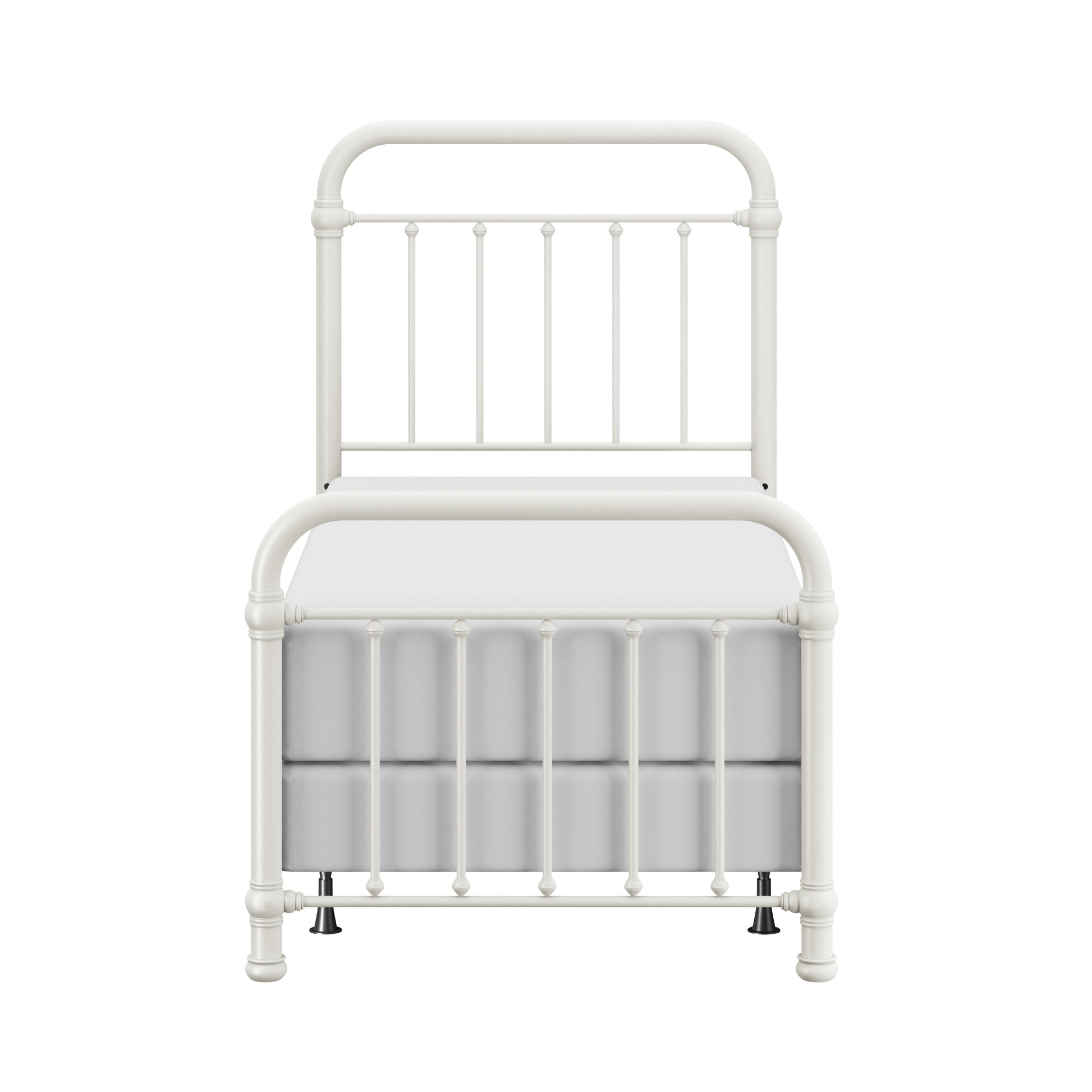 This full-size metal bed adds a touch of vintage style to any bedroom, featuring castings and fittings that seamlessly complement its rounded square design. Elegant and trendy, the white finish is a versatile choice that fits into a wide variety of decor styles and color schemes. Includes headboard, footboard, and bed frame. Box spring and mattress required; not included. Assembly required.