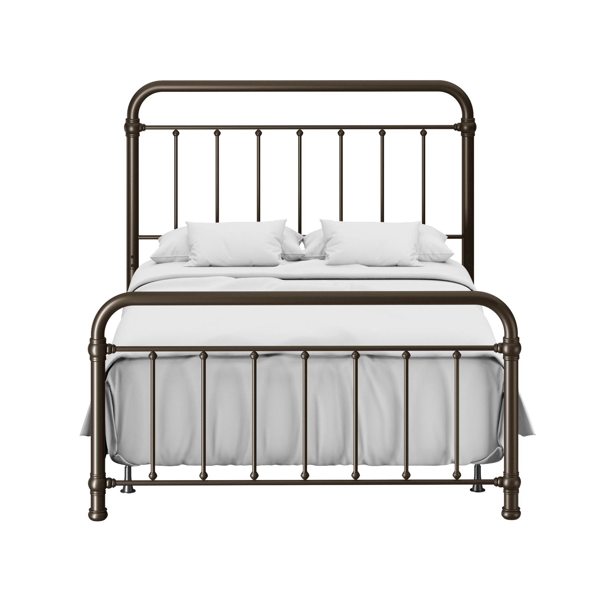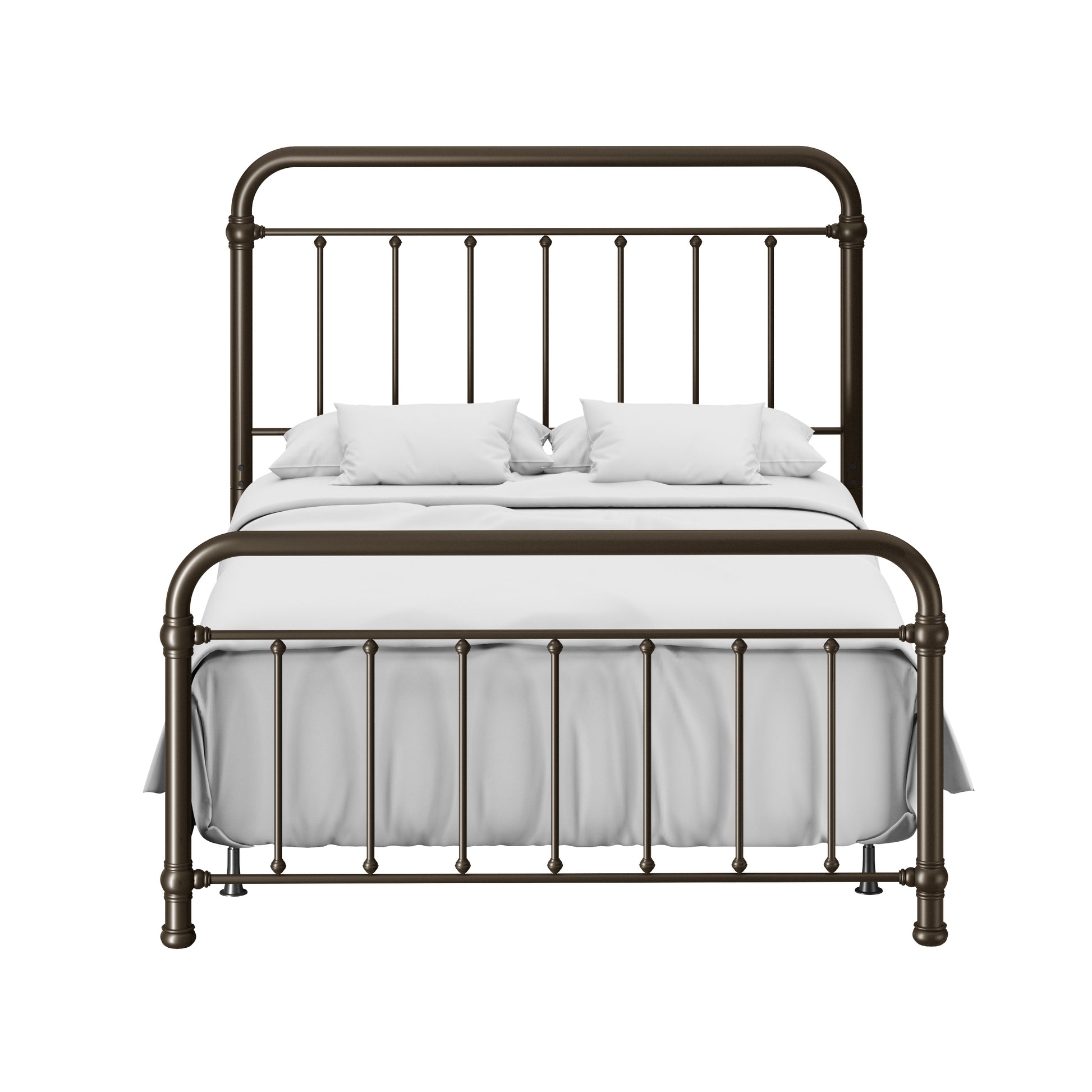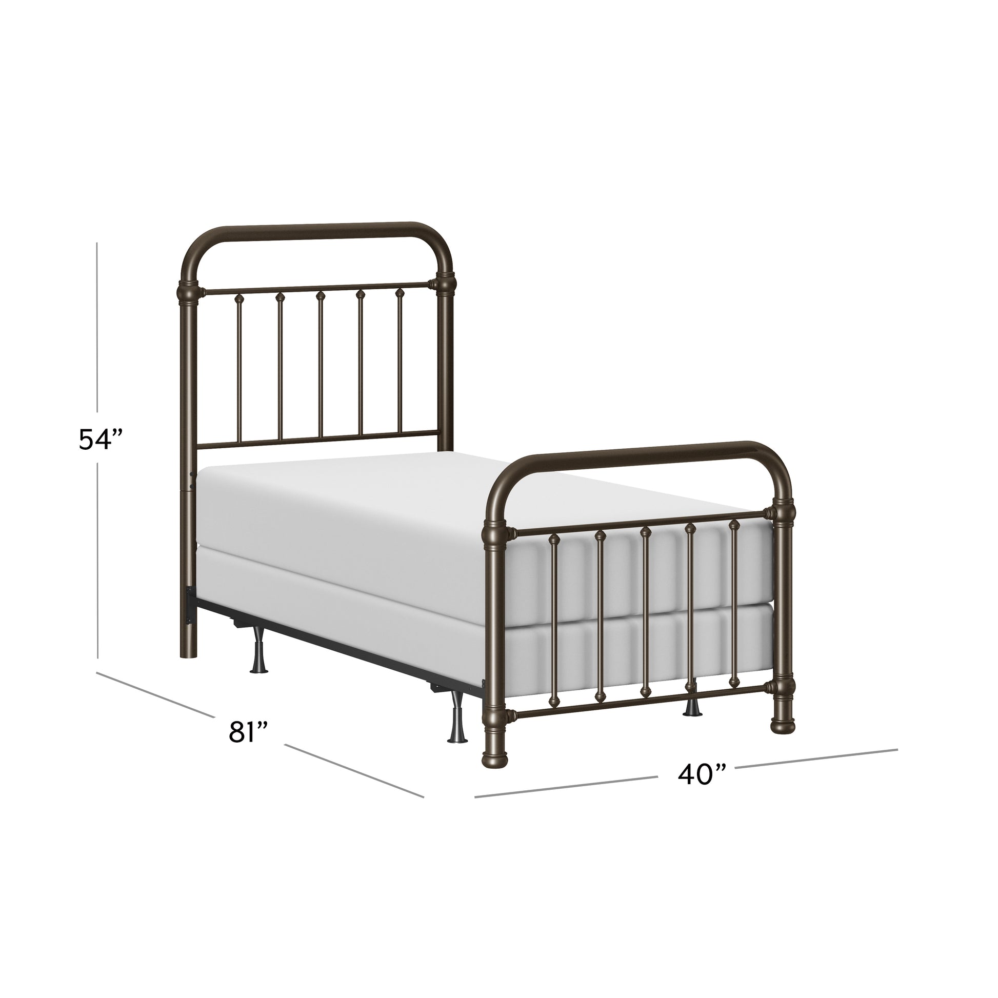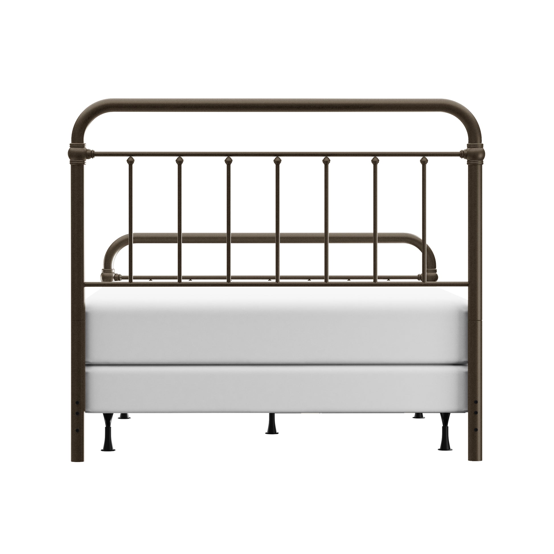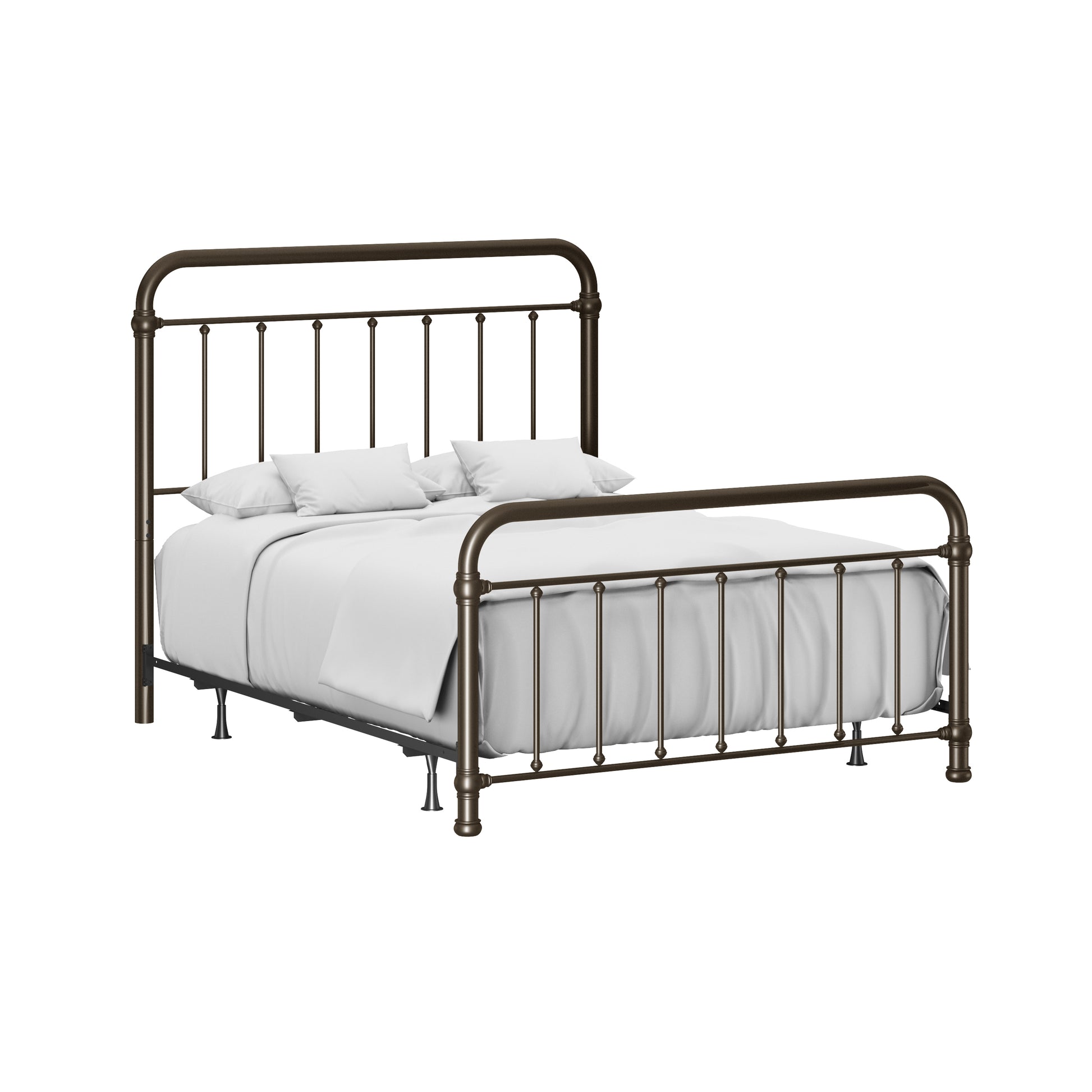 This full-size metal bed adds a touch of vintage style to any bedroom, featuring castings and fittings that seamlessly complement its rounded square design. Elegant and trendy, the white finish is a versatile choice that fits into a wide variety of decor styles and color schemes. Includes headboard, footboard, and bed frame. Box spring and mattress required; not included. Assembly required.