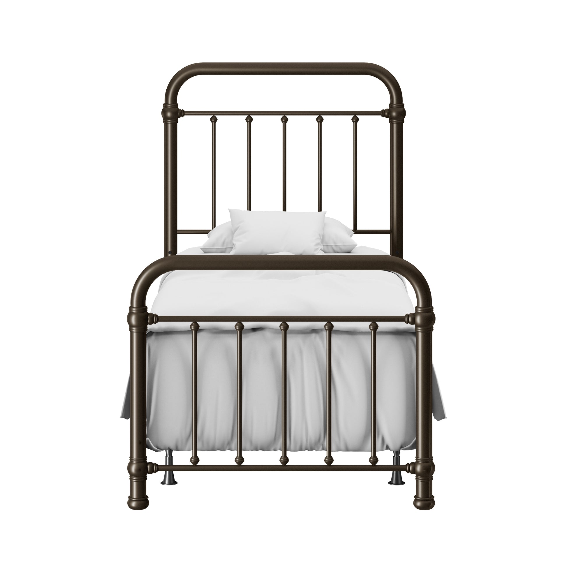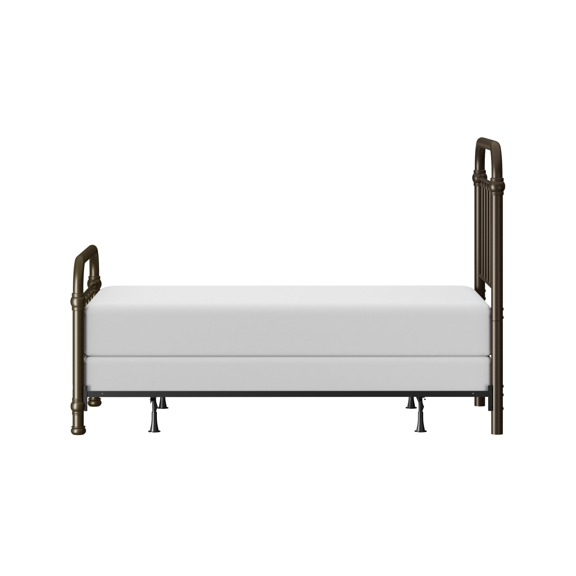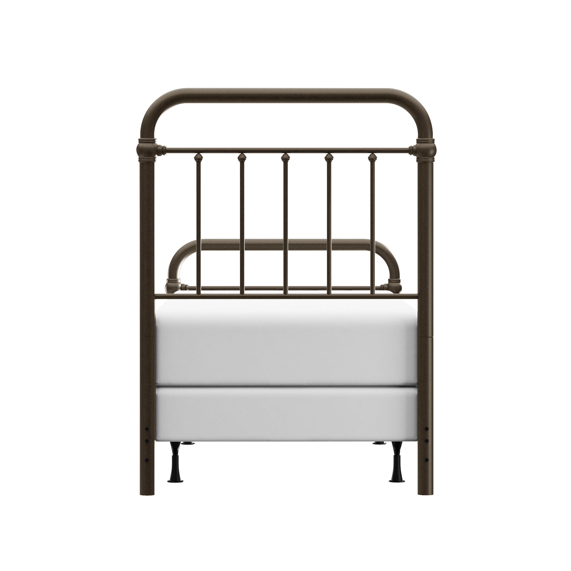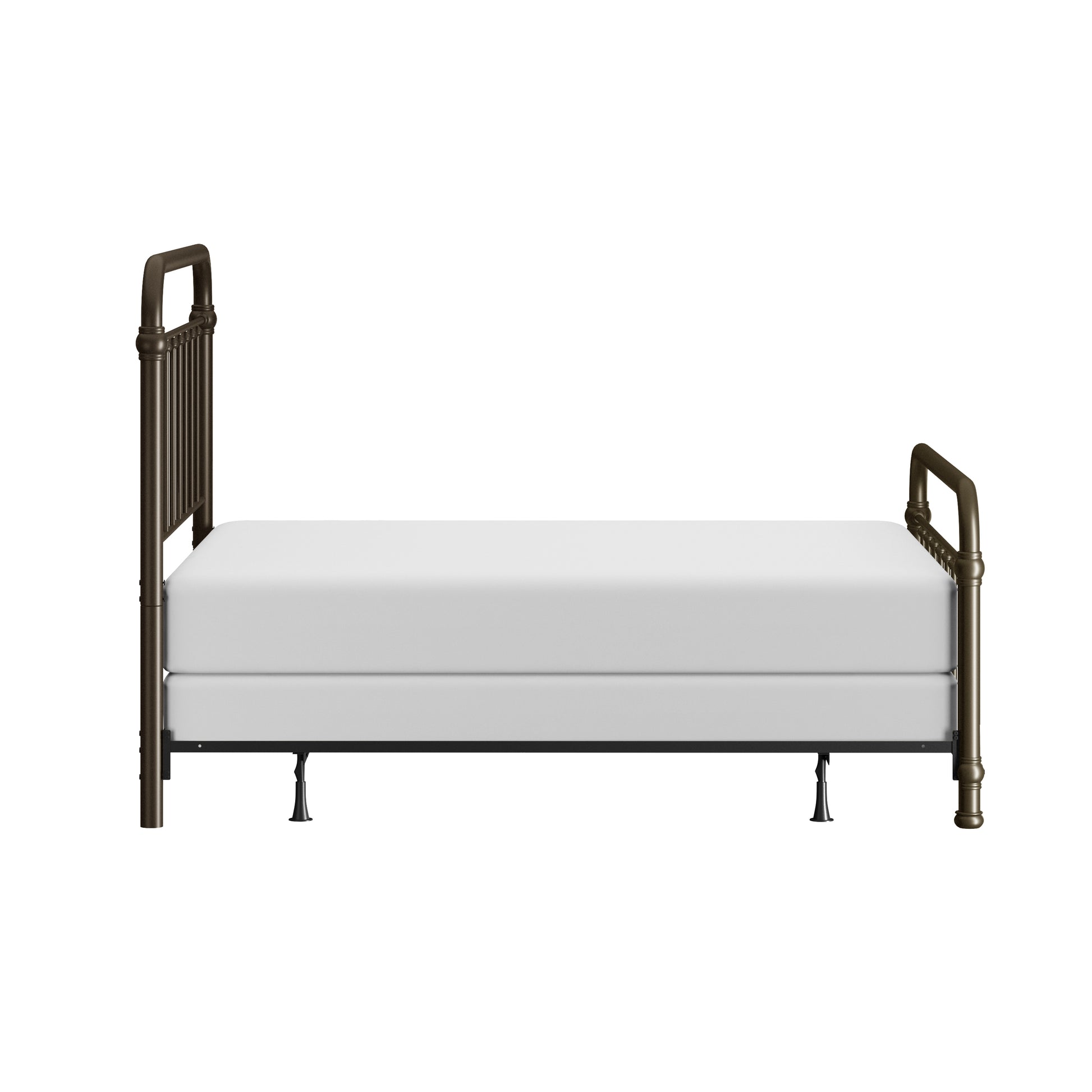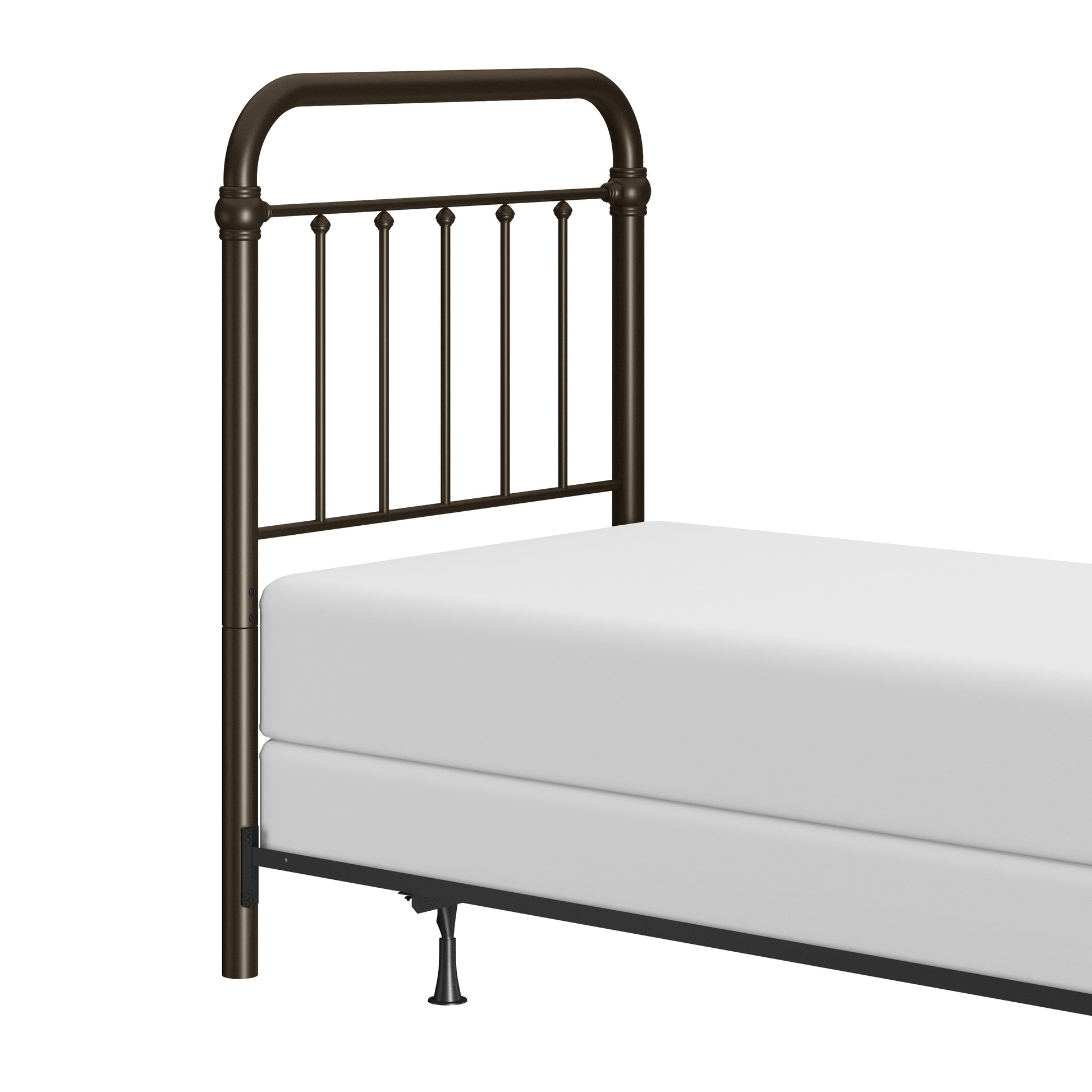 This full-size metal bed adds a touch of vintage style to any bedroom, featuring castings and fittings that seamlessly complement its rounded square design. Elegant and trendy, the white finish is a versatile choice that fits into a wide variety of decor styles and color schemes. Includes headboard, footboard, and bed frame. Box spring and mattress required; not included. Assembly required.