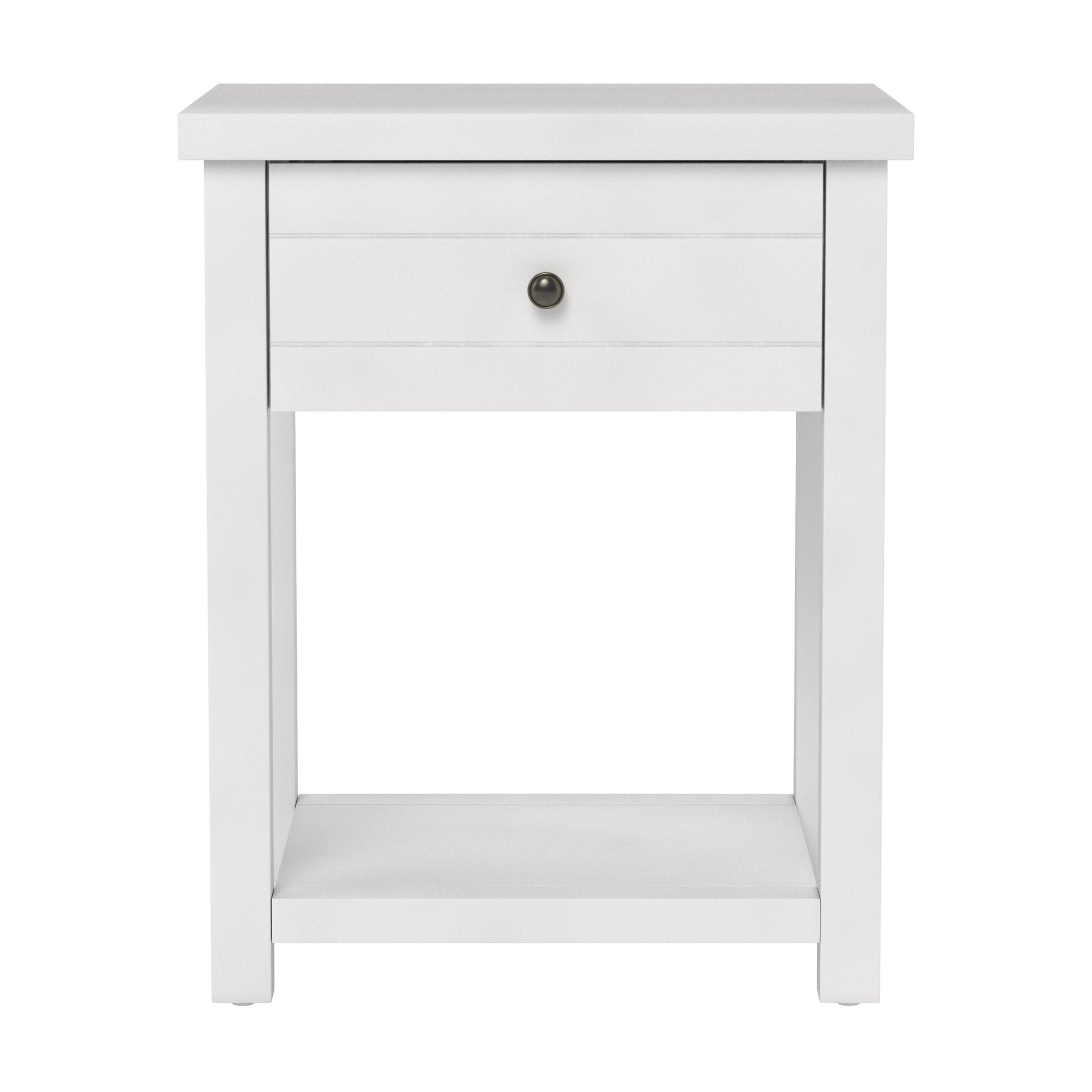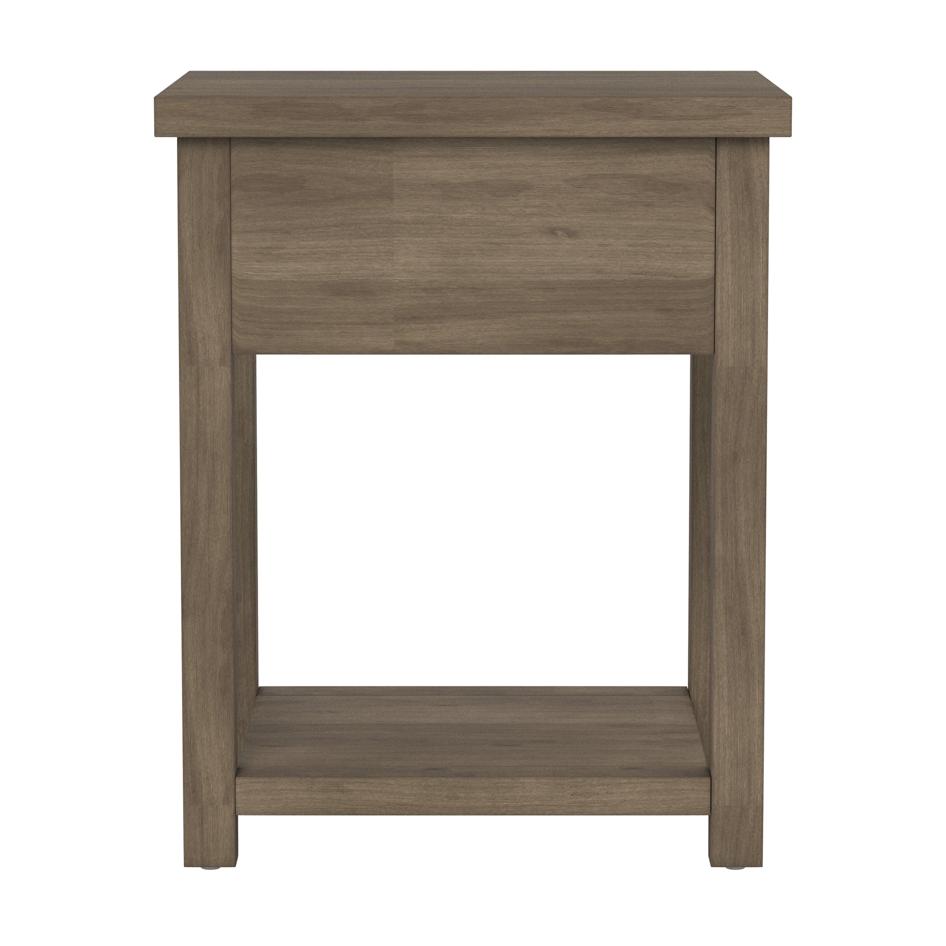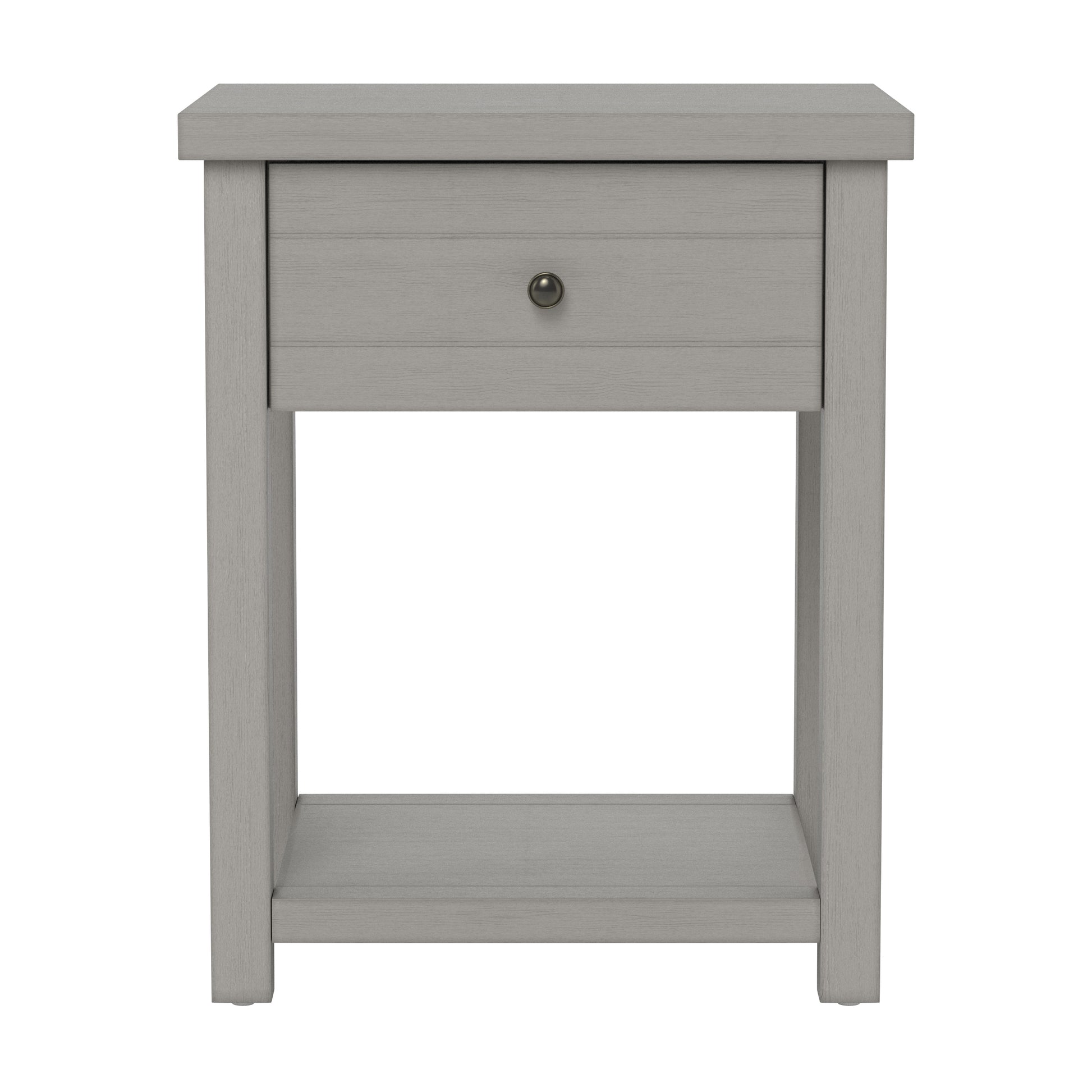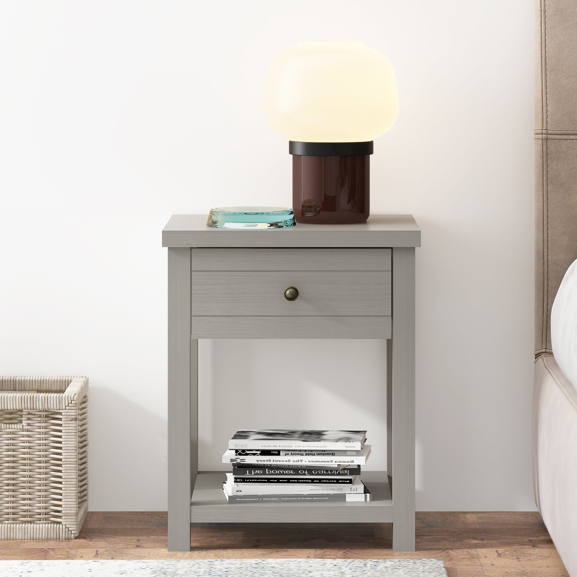 Add a touch of modern cottage style to your home with this charming accent table. Perfect for small storage or just as an accent piece to highlight collectibles or books, this table will immediately add both functionality and beauty to your home. Finished in knotty gray oak on laminated particleboard and MDF with a dark antique bronze knob, this piece will give your bedroom, entryway or living room a sleek and updated look. The lower shelf and drawer provide storage and display space for all your personal and room essentials. Assembly required.