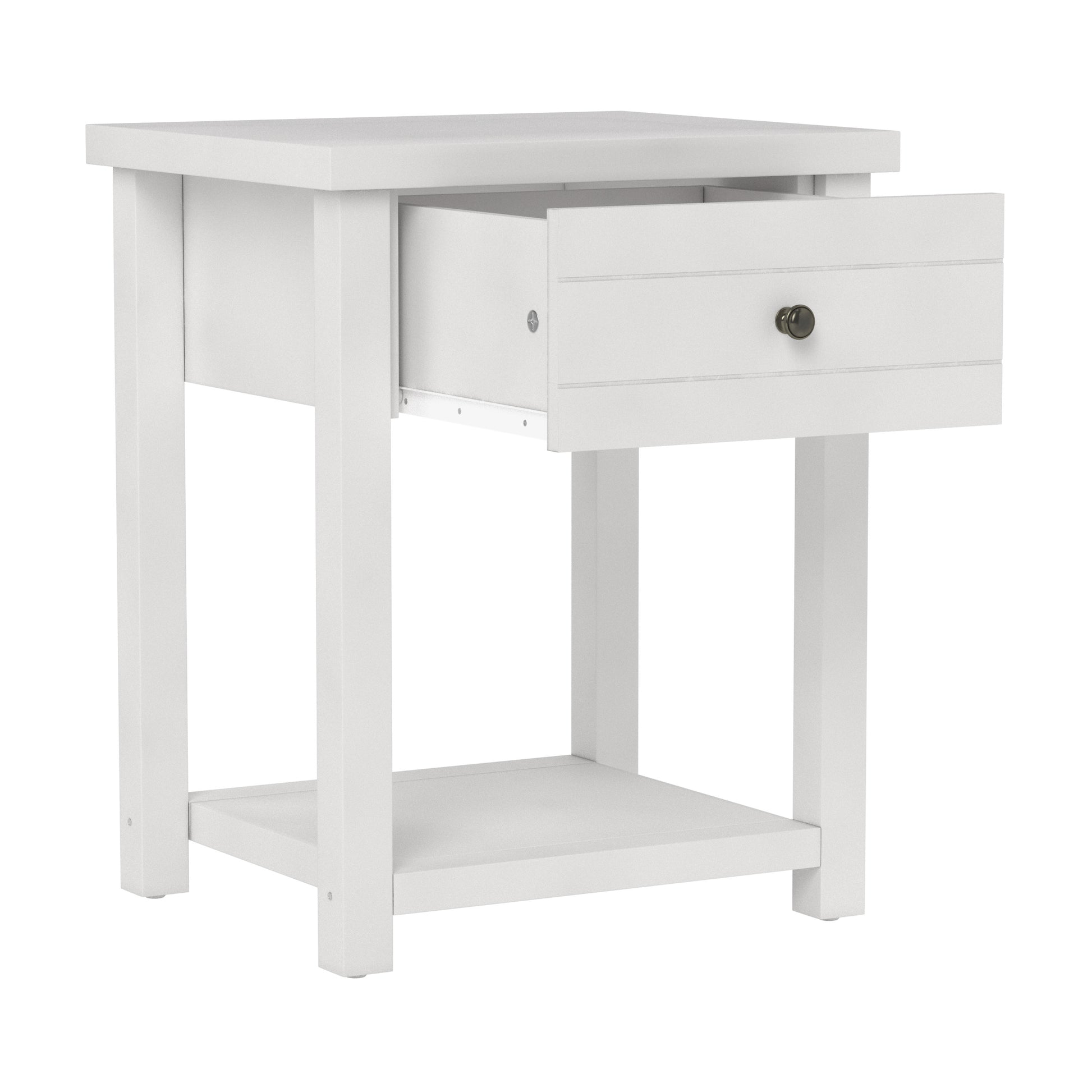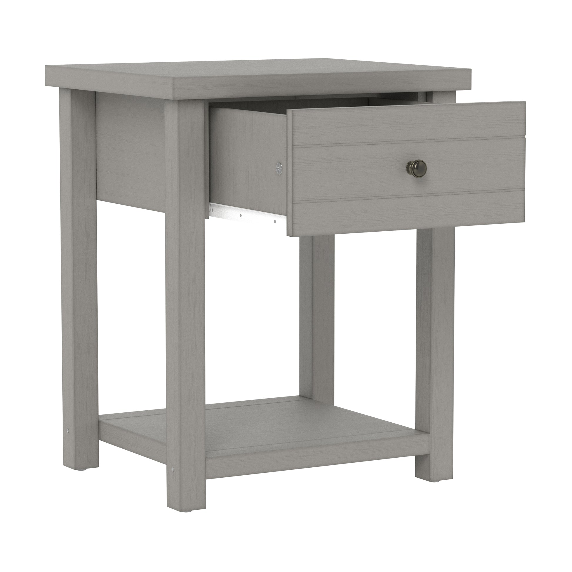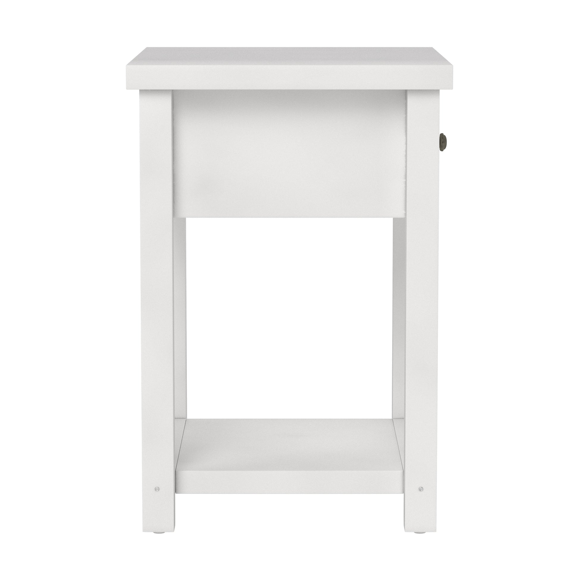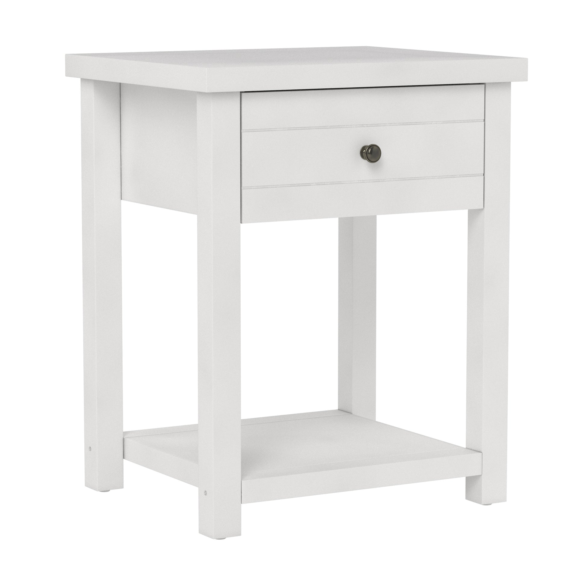 Add a touch of modern cottage style to your home with this charming accent table. Perfect for small storage or just as an accent piece to highlight collectibles or books, this table will immediately add both functionality and beauty to your home. Finished in knotty gray oak on laminated particleboard and MDF with a dark antique bronze knob, this piece will give your bedroom, entryway or living room a sleek and updated look. The lower shelf and drawer provide storage and display space for all your personal and room essentials. Assembly required.