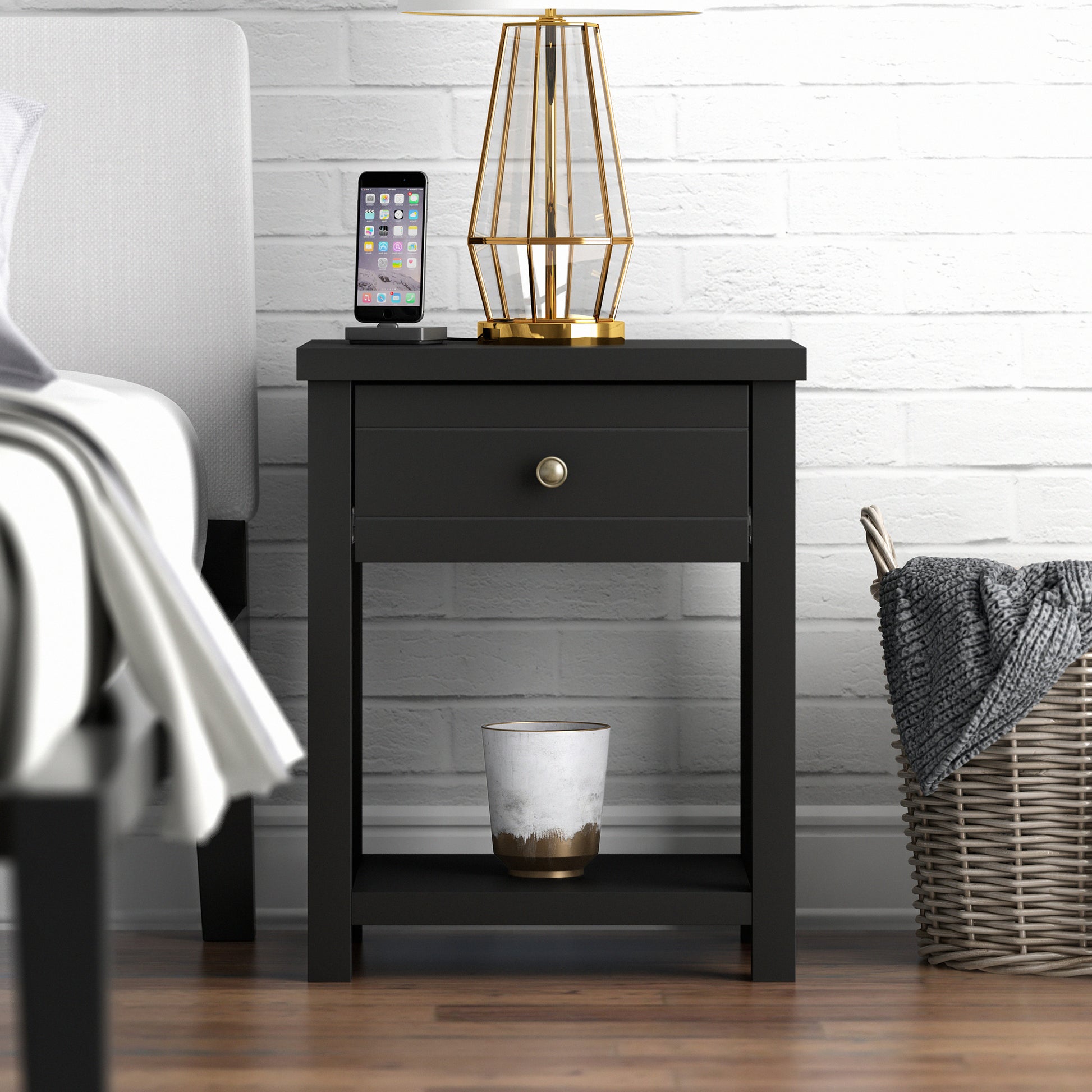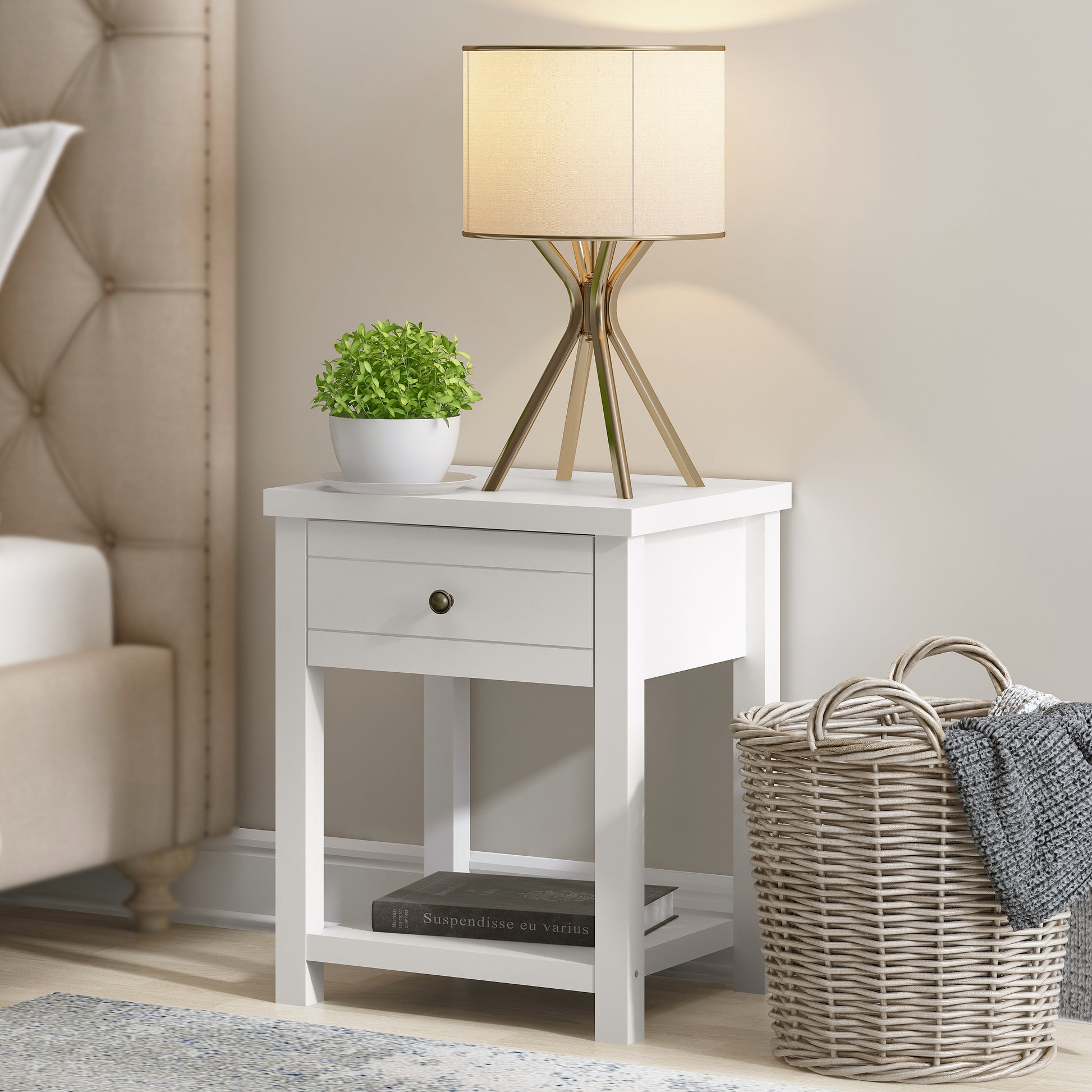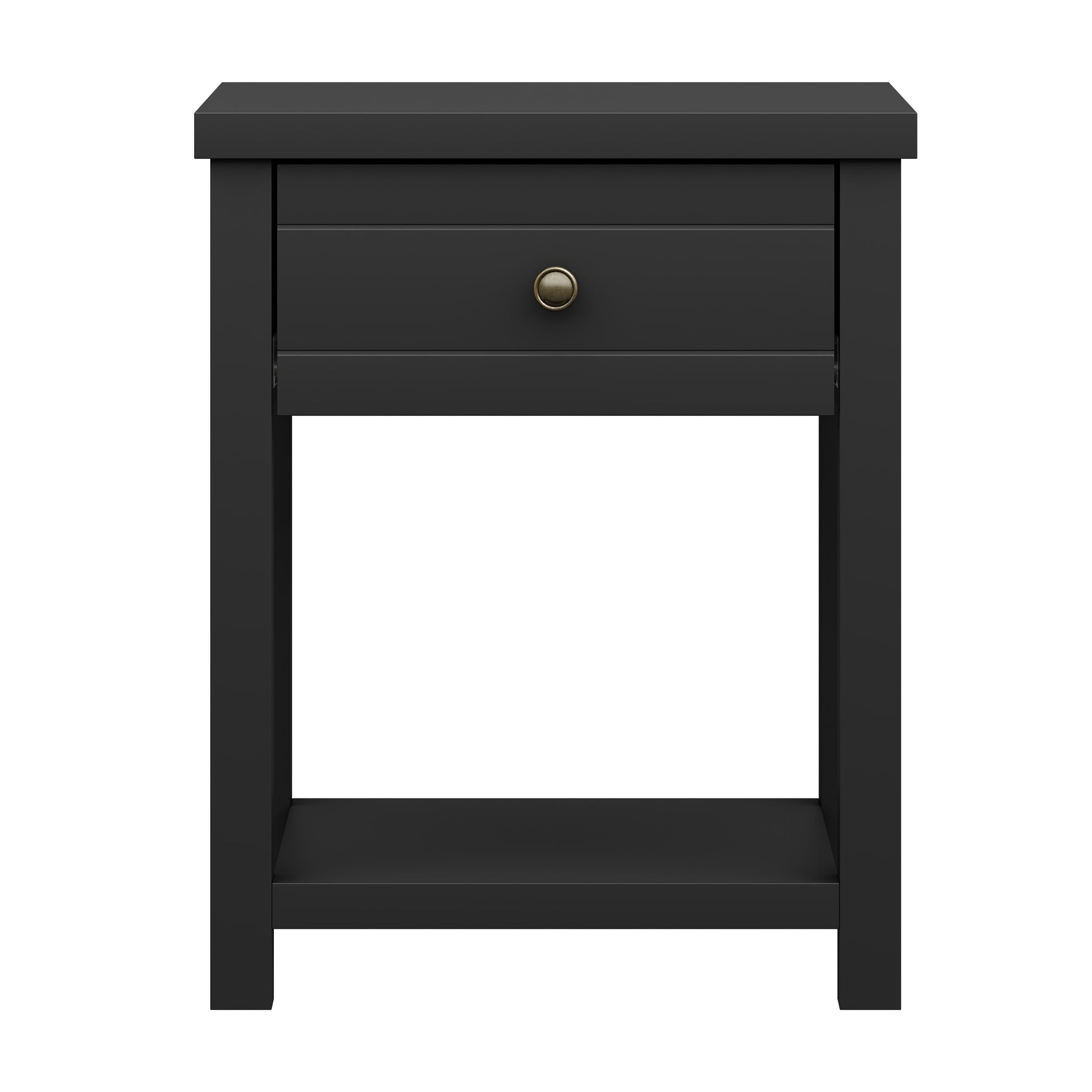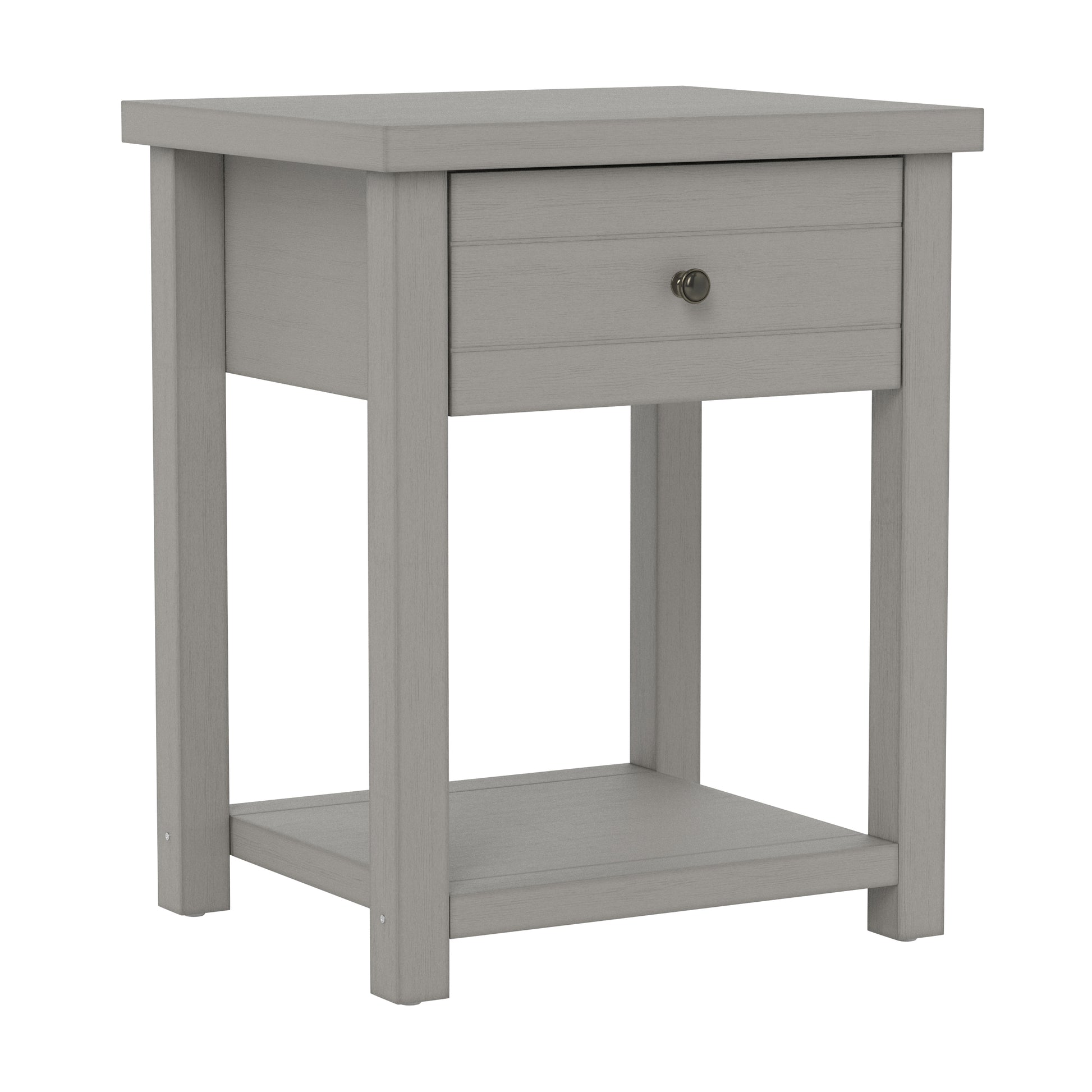 Add a touch of modern cottage style to your home with this charming accent table. Perfect for small storage or just as an accent piece to highlight collectibles or books, this table will immediately add both functionality and beauty to your home. Finished in knotty gray oak on laminated particleboard and MDF with a dark antique bronze knob, this piece will give your bedroom, entryway or living room a sleek and updated look. The lower shelf and drawer provide storage and display space for all your personal and room essentials. Assembly required.