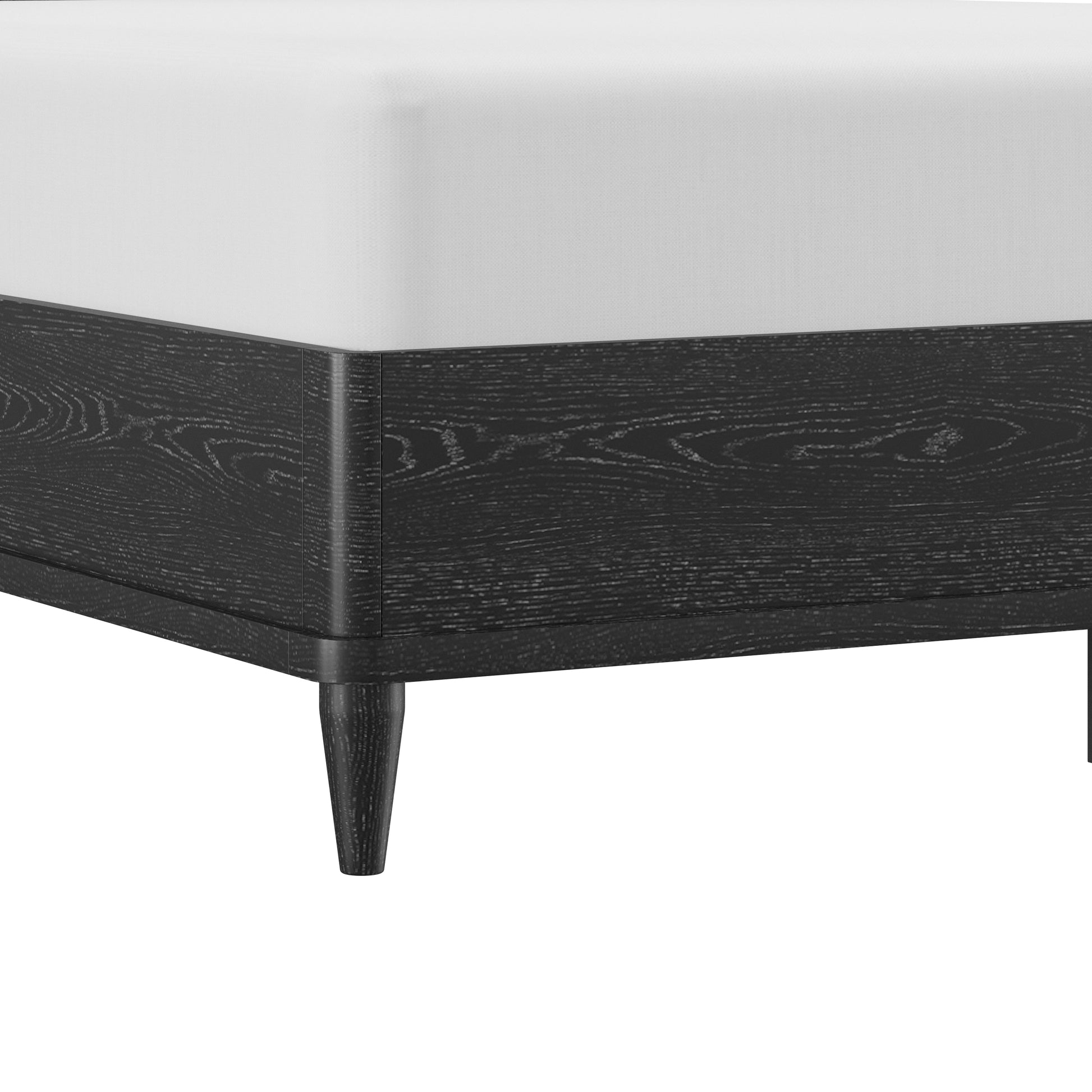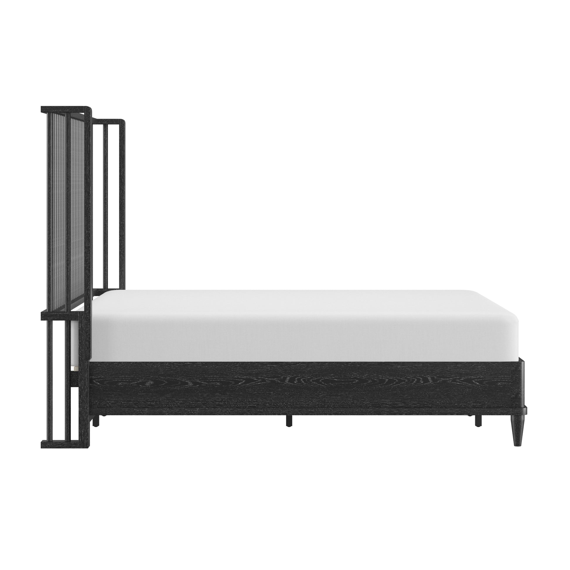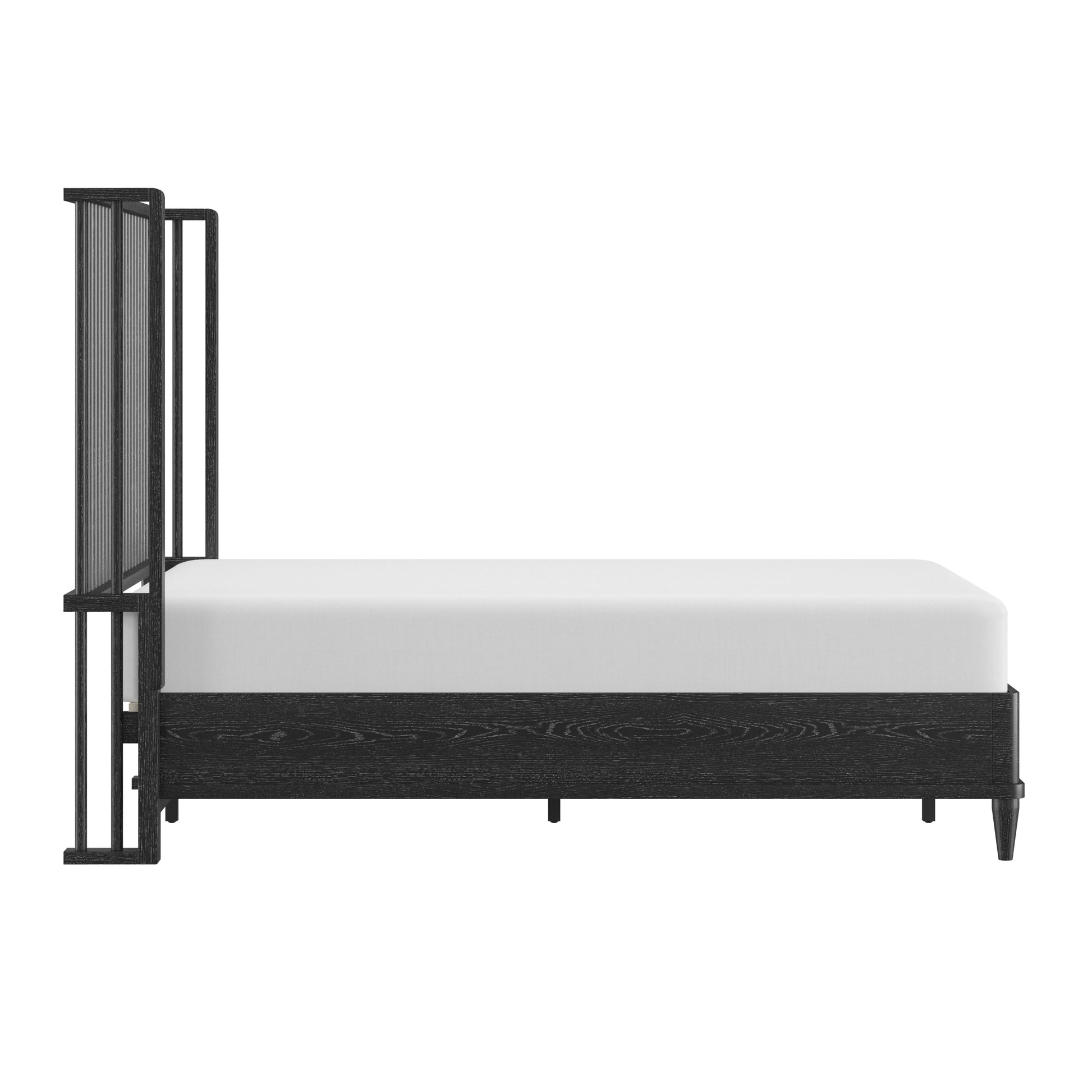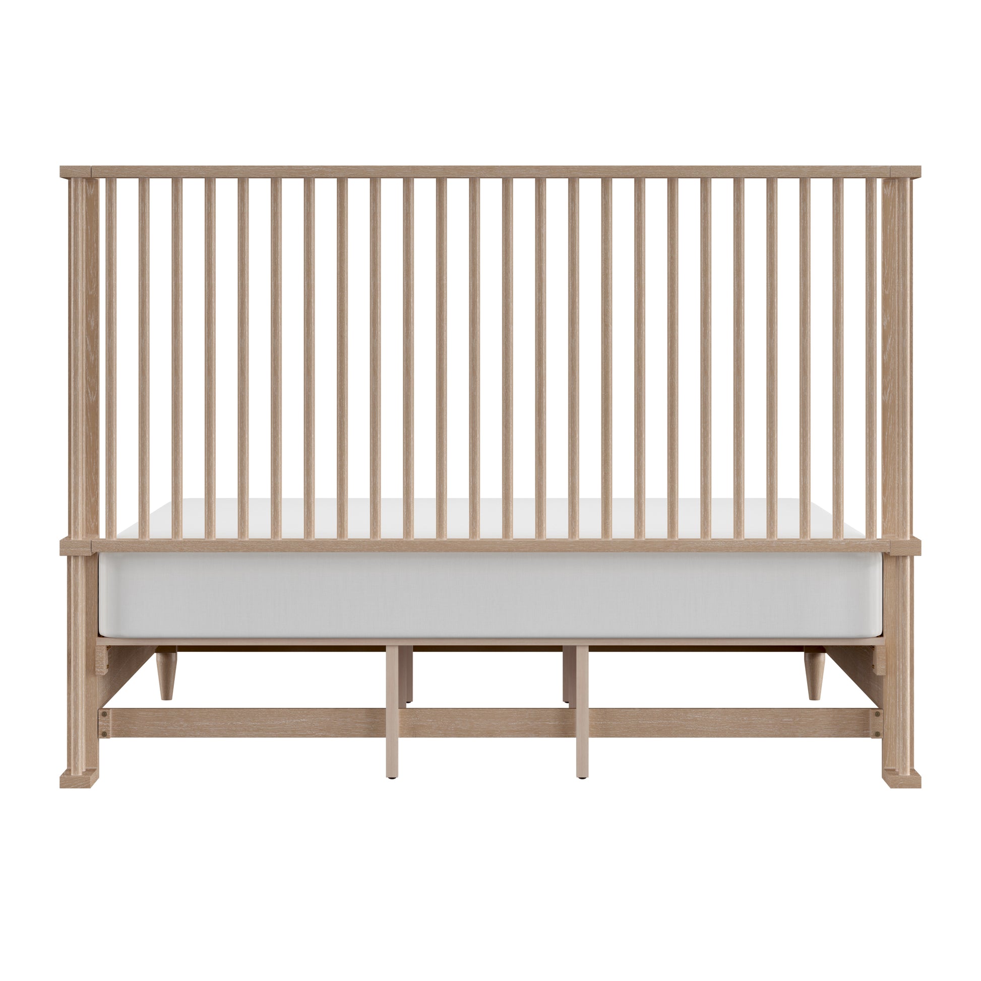 With rounded corners and elegantly tapered legs, this king platform shelter bed is the picture of refined simplicity. A light oak finish allows the rich wood grain of the solid wood construction to shine through, highlighting its natural beauty and texture. The statement headboard is a stunning display of coastal farmhouse style, with an array of carefully placed spindles running along the headboard, showcasing a gorgeous wingback silhouette. Molding winds across the base of this piece in a clean line, adding further dimension. Designed in the platform style, this bed doesn’t require a box spring. Mattress not included. Assembly required.