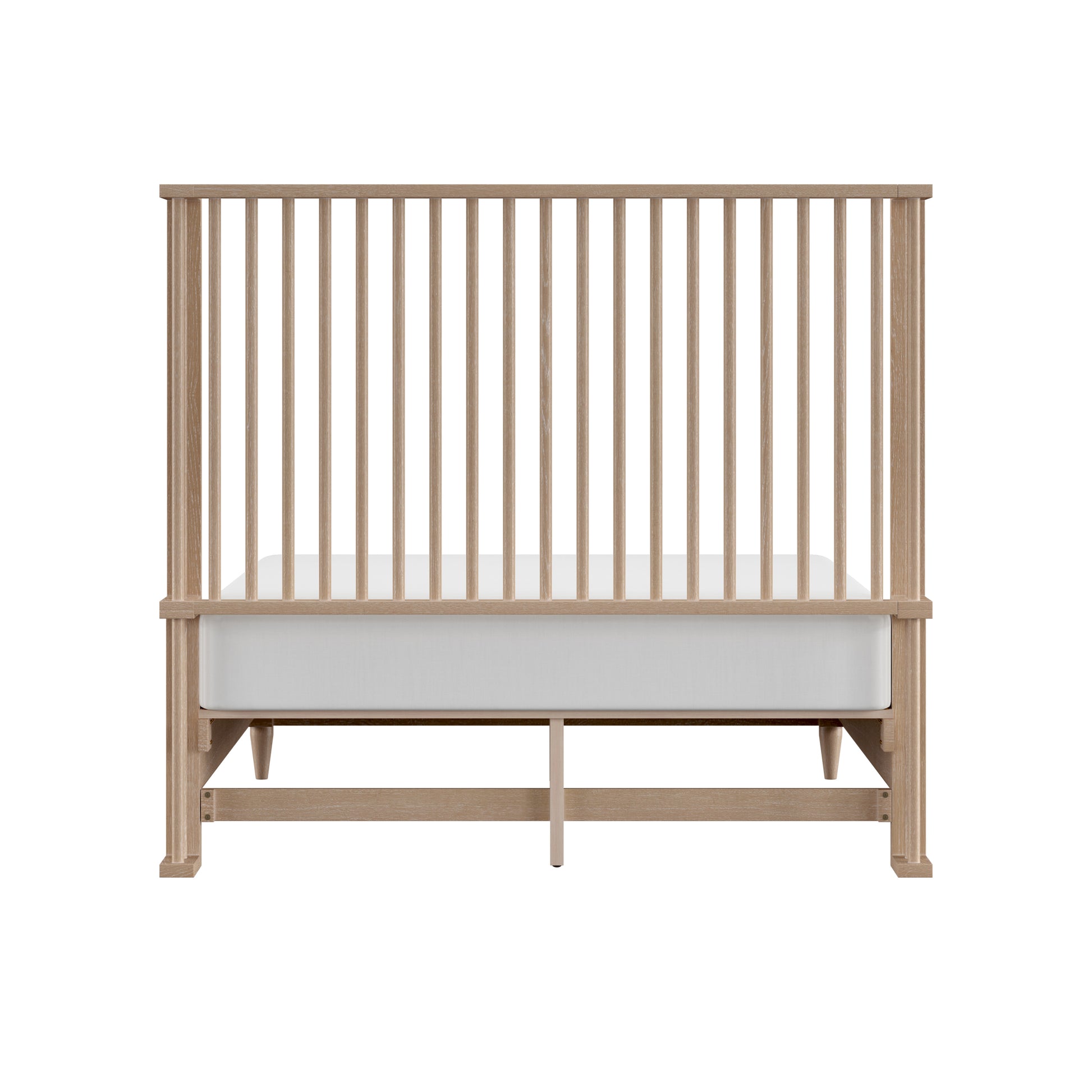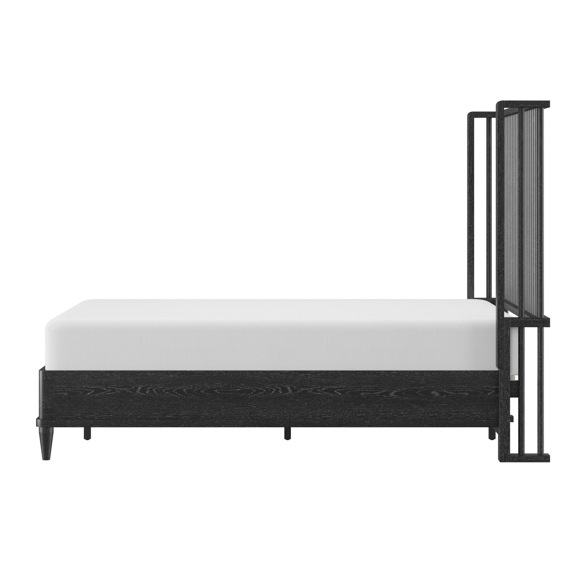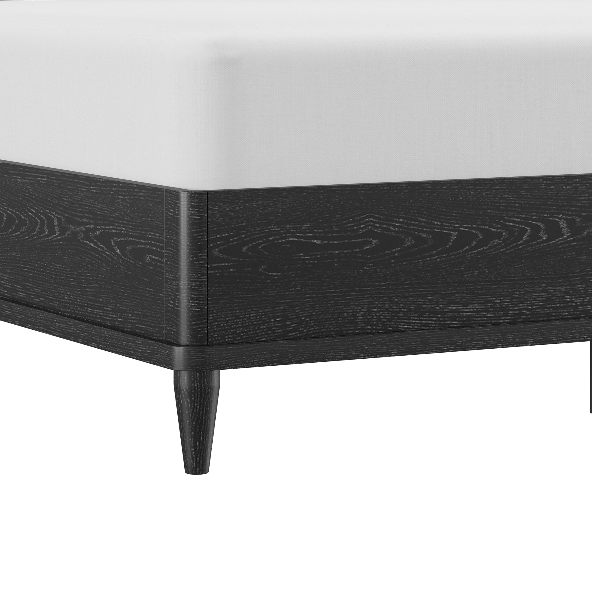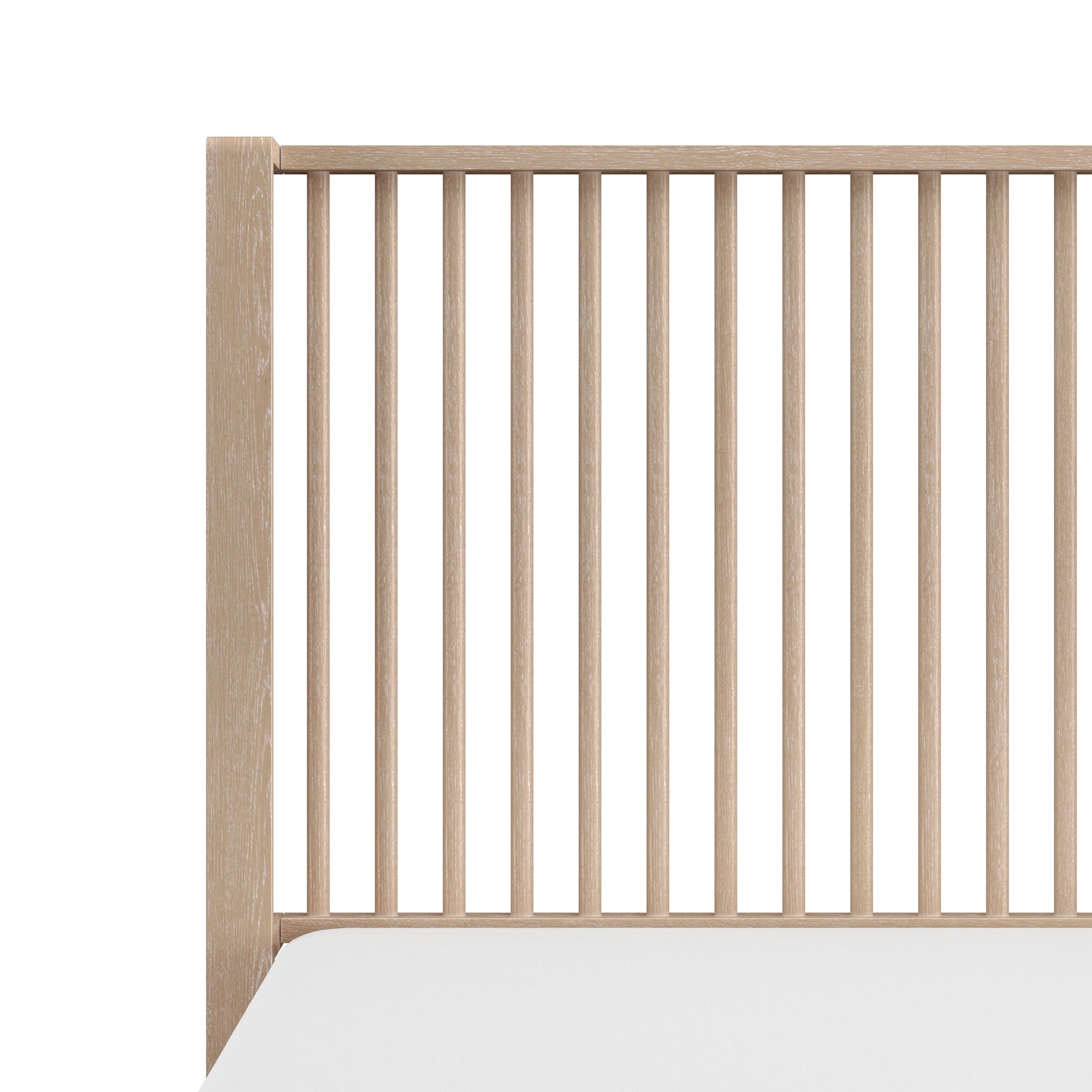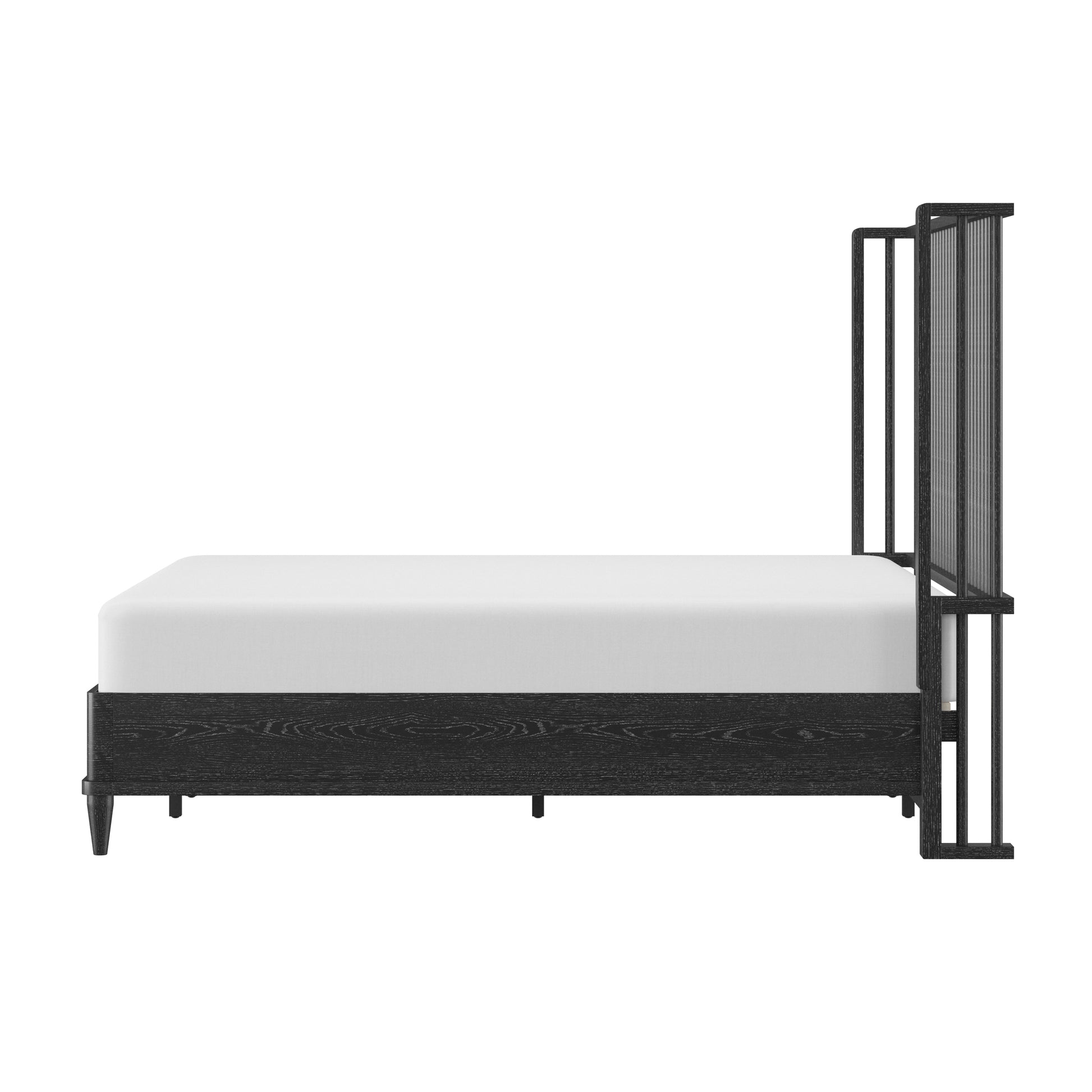 With rounded corners and elegantly tapered legs, this king platform shelter bed is the picture of refined simplicity. A light oak finish allows the rich wood grain of the solid wood construction to shine through, highlighting its natural beauty and texture. The statement headboard is a stunning display of coastal farmhouse style, with an array of carefully placed spindles running along the headboard, showcasing a gorgeous wingback silhouette. Molding winds across the base of this piece in a clean line, adding further dimension. Designed in the platform style, this bed doesn’t require a box spring. Mattress not included. Assembly required.